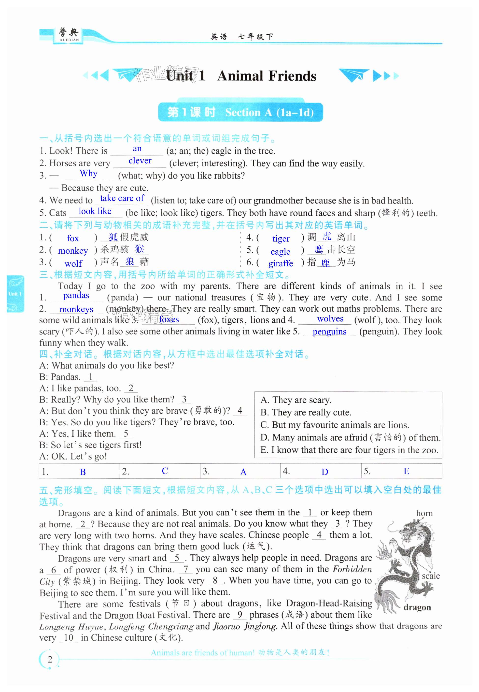 注:目前有些书本章节名称可能整理的还不是很完善,但都是按照顺序排列的,请同学们按照顺序仔细查找。练习册 2025年学典四川七年级英语下册人教版B版 答案主要是用来给同学们做完题方便对答案用的,请勿直接抄袭。