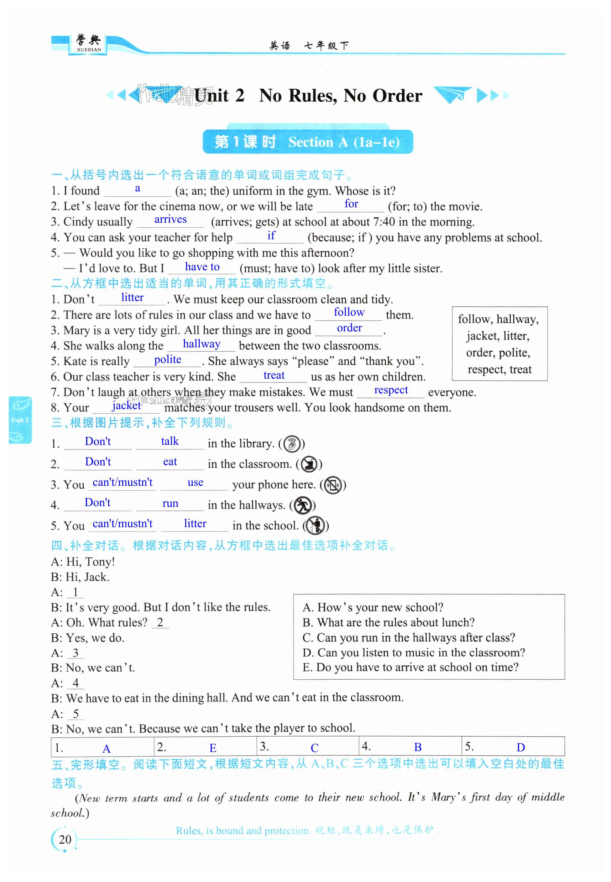 注:目前有些书本章节名称可能整理的还不是很完善,但都是按照顺序排列的,请同学们按照顺序仔细查找。练习册 2025年学典四川七年级英语下册人教版B版 答案主要是用来给同学们做完题方便对答案用的,请勿直接抄袭。