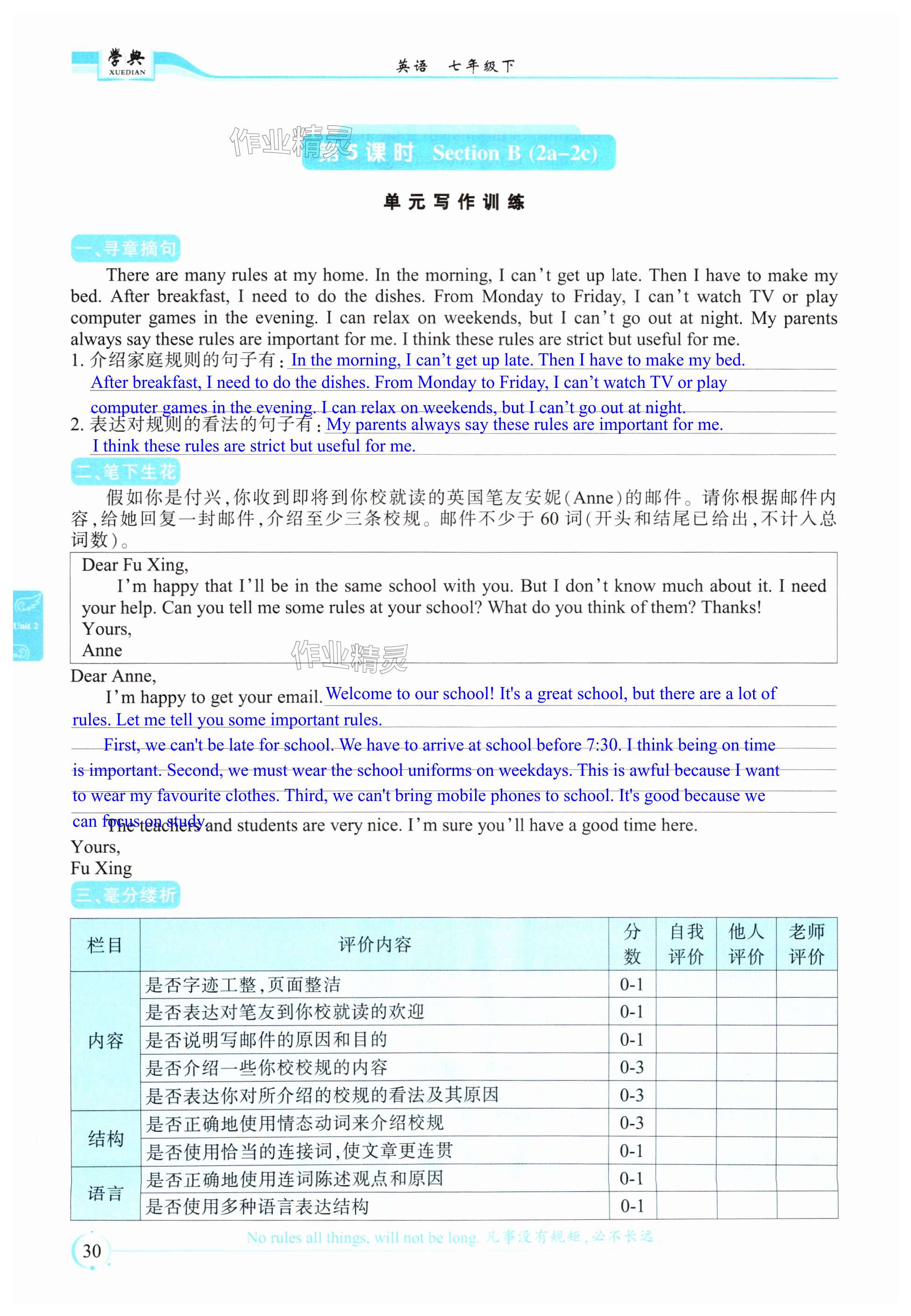 注:目前有些书本章节名称可能整理的还不是很完善,但都是按照顺序排列的,请同学们按照顺序仔细查找。练习册 2025年学典四川七年级英语下册人教版B版 答案主要是用来给同学们做完题方便对答案用的,请勿直接抄袭。