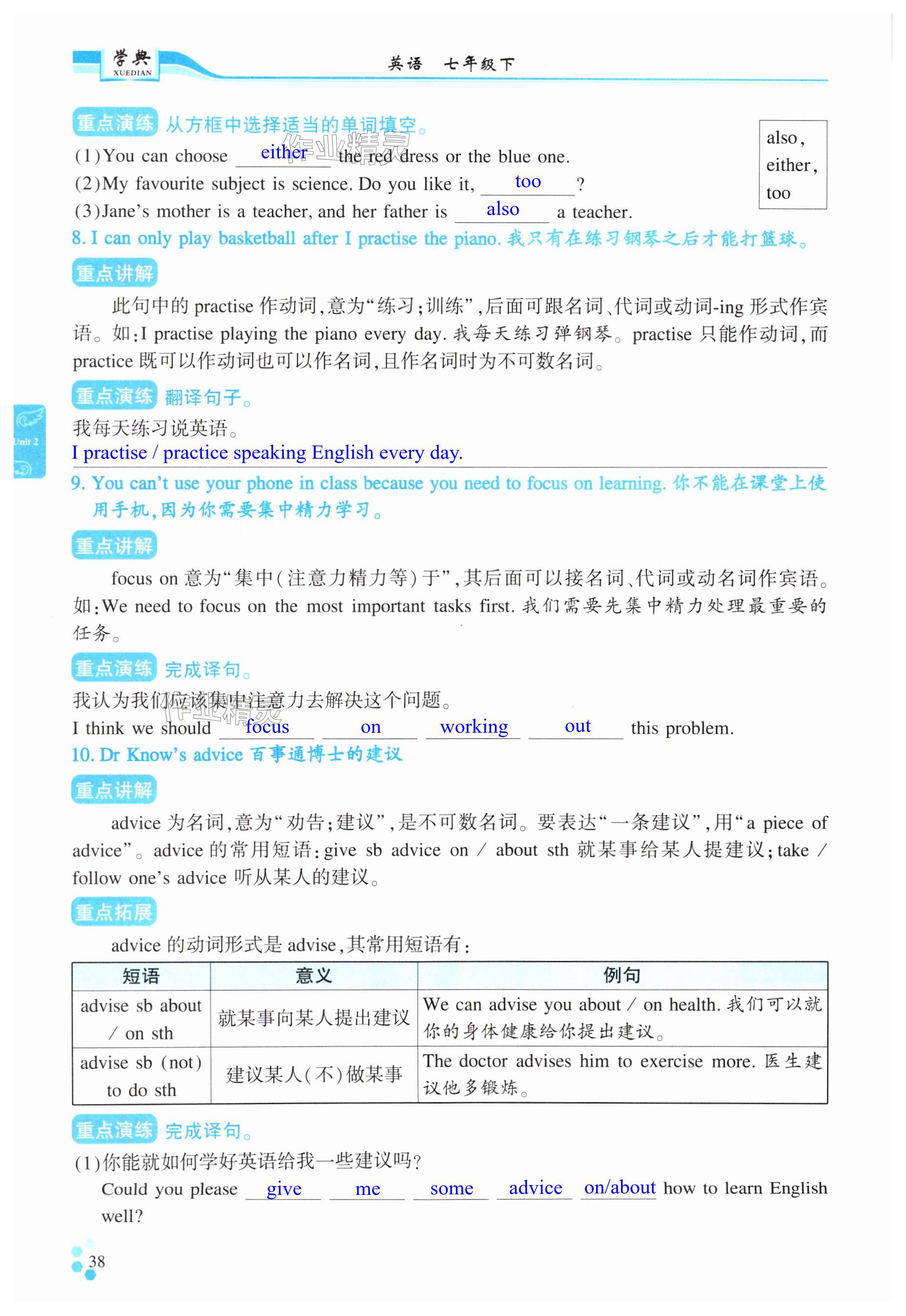 注:目前有些书本章节名称可能整理的还不是很完善,但都是按照顺序排列的,请同学们按照顺序仔细查找。练习册 2025年学典四川七年级英语下册人教版B版 答案主要是用来给同学们做完题方便对答案用的,请勿直接抄袭。