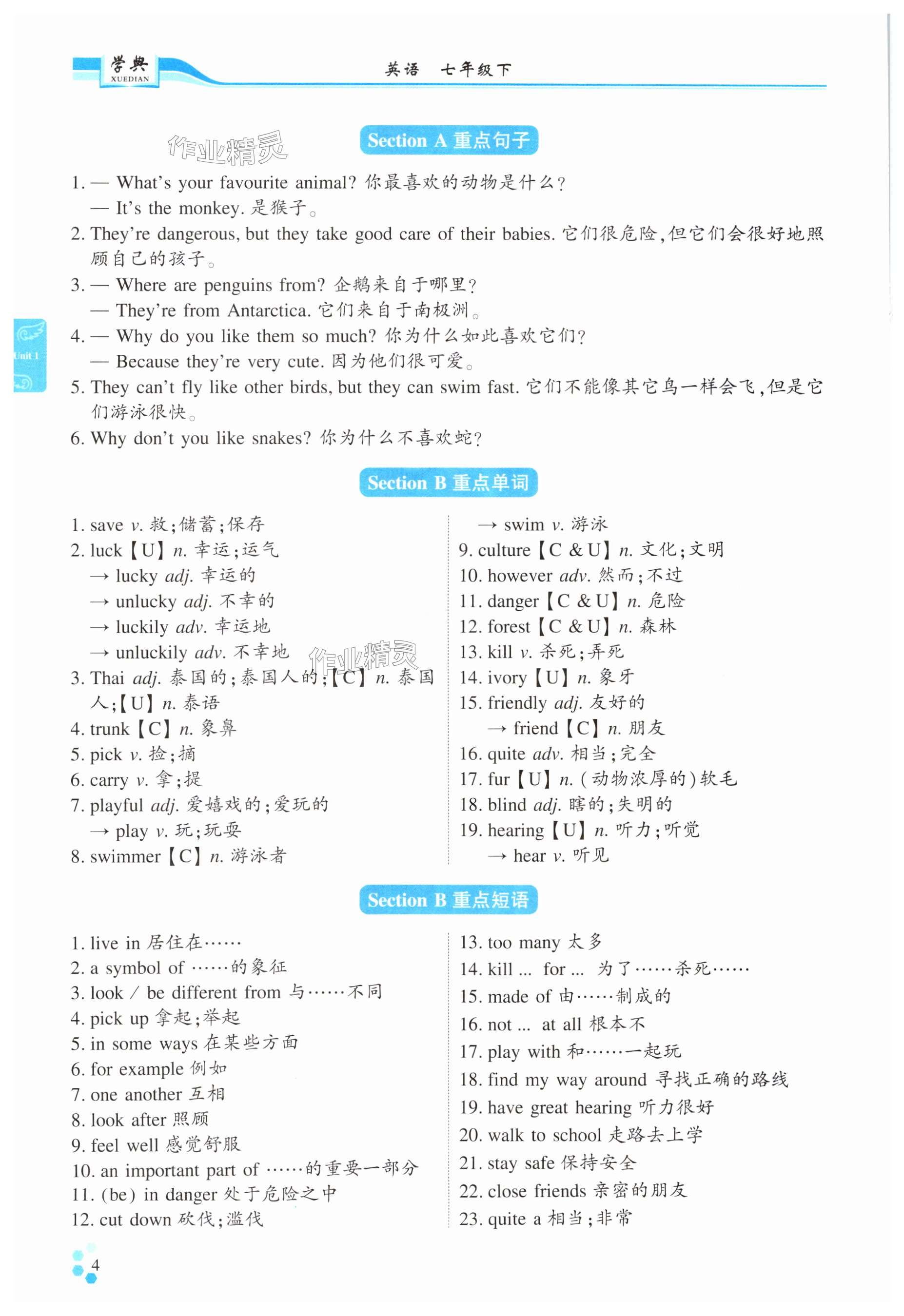 注:目前有些书本章节名称可能整理的还不是很完善,但都是按照顺序排列的,请同学们按照顺序仔细查找。练习册 2025年学典四川七年级英语下册人教版B版 答案主要是用来给同学们做完题方便对答案用的,请勿直接抄袭。