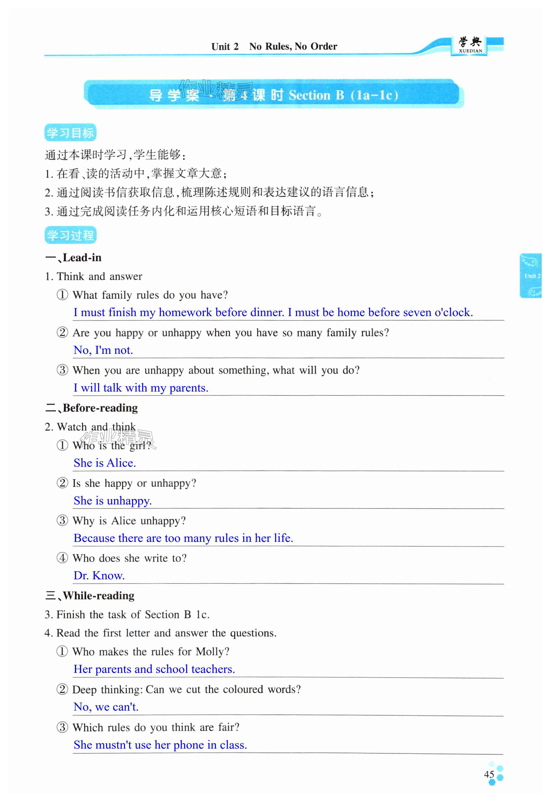 注:目前有些书本章节名称可能整理的还不是很完善,但都是按照顺序排列的,请同学们按照顺序仔细查找。练习册 2025年学典四川七年级英语下册人教版B版 答案主要是用来给同学们做完题方便对答案用的,请勿直接抄袭。