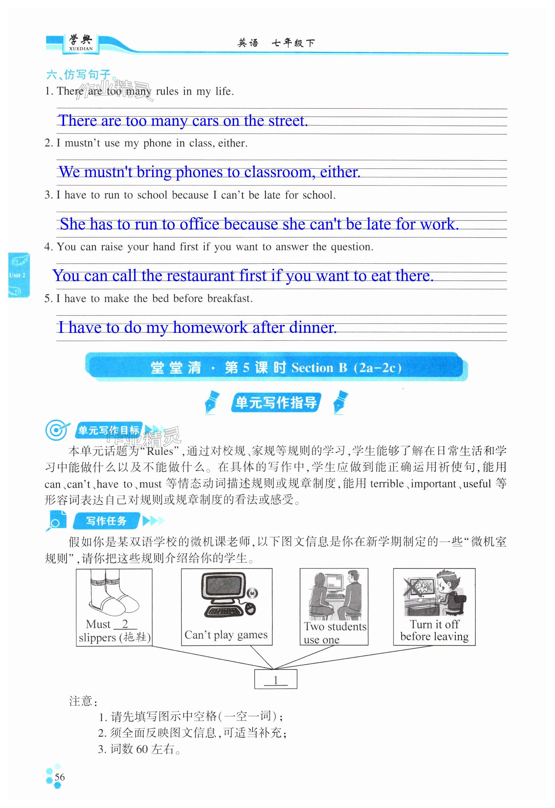 注:目前有些书本章节名称可能整理的还不是很完善,但都是按照顺序排列的,请同学们按照顺序仔细查找。练习册 2025年学典四川七年级英语下册人教版B版 答案主要是用来给同学们做完题方便对答案用的,请勿直接抄袭。