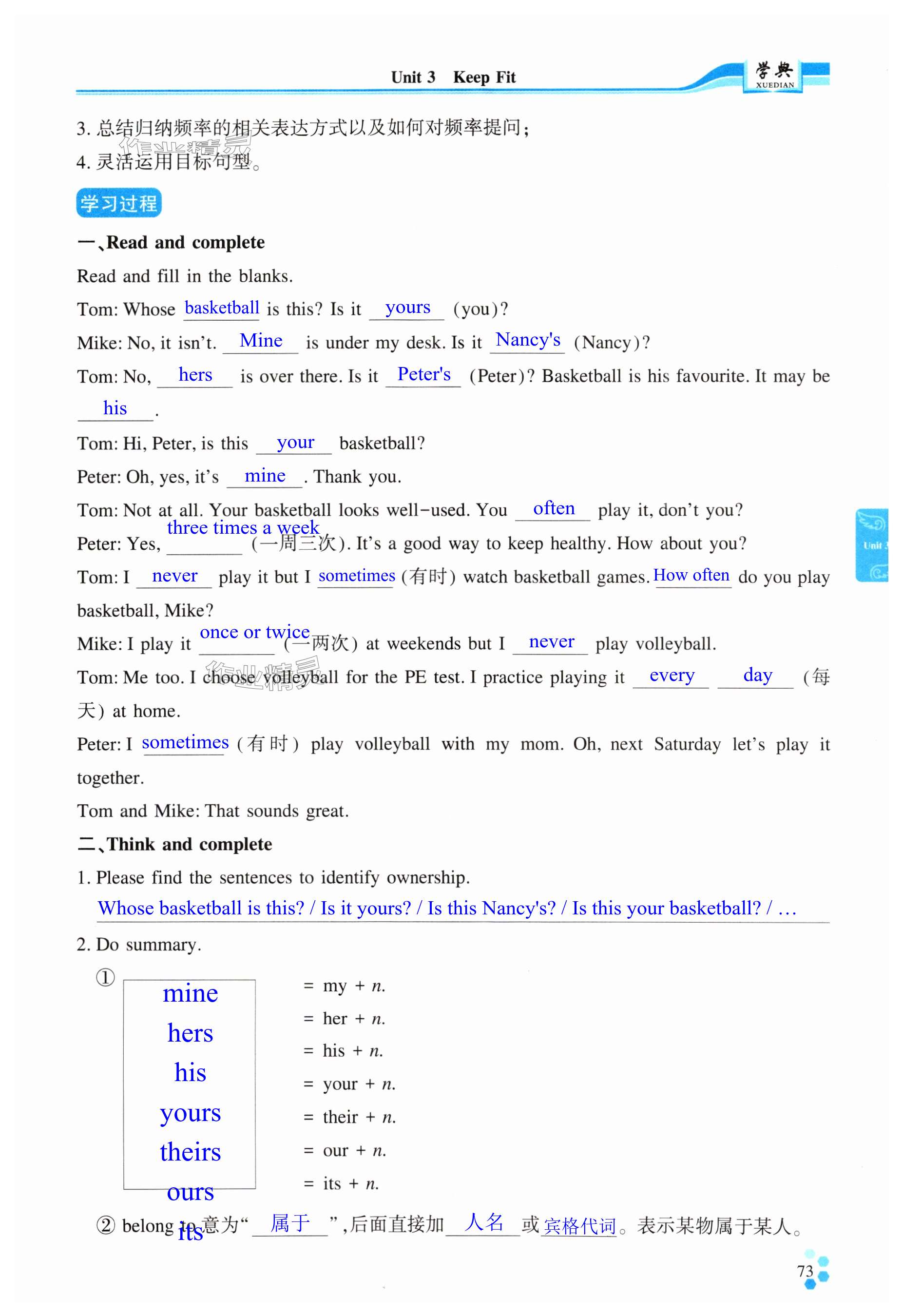 注:目前有些书本章节名称可能整理的还不是很完善,但都是按照顺序排列的,请同学们按照顺序仔细查找。练习册 2025年学典四川七年级英语下册人教版B版 答案主要是用来给同学们做完题方便对答案用的,请勿直接抄袭。