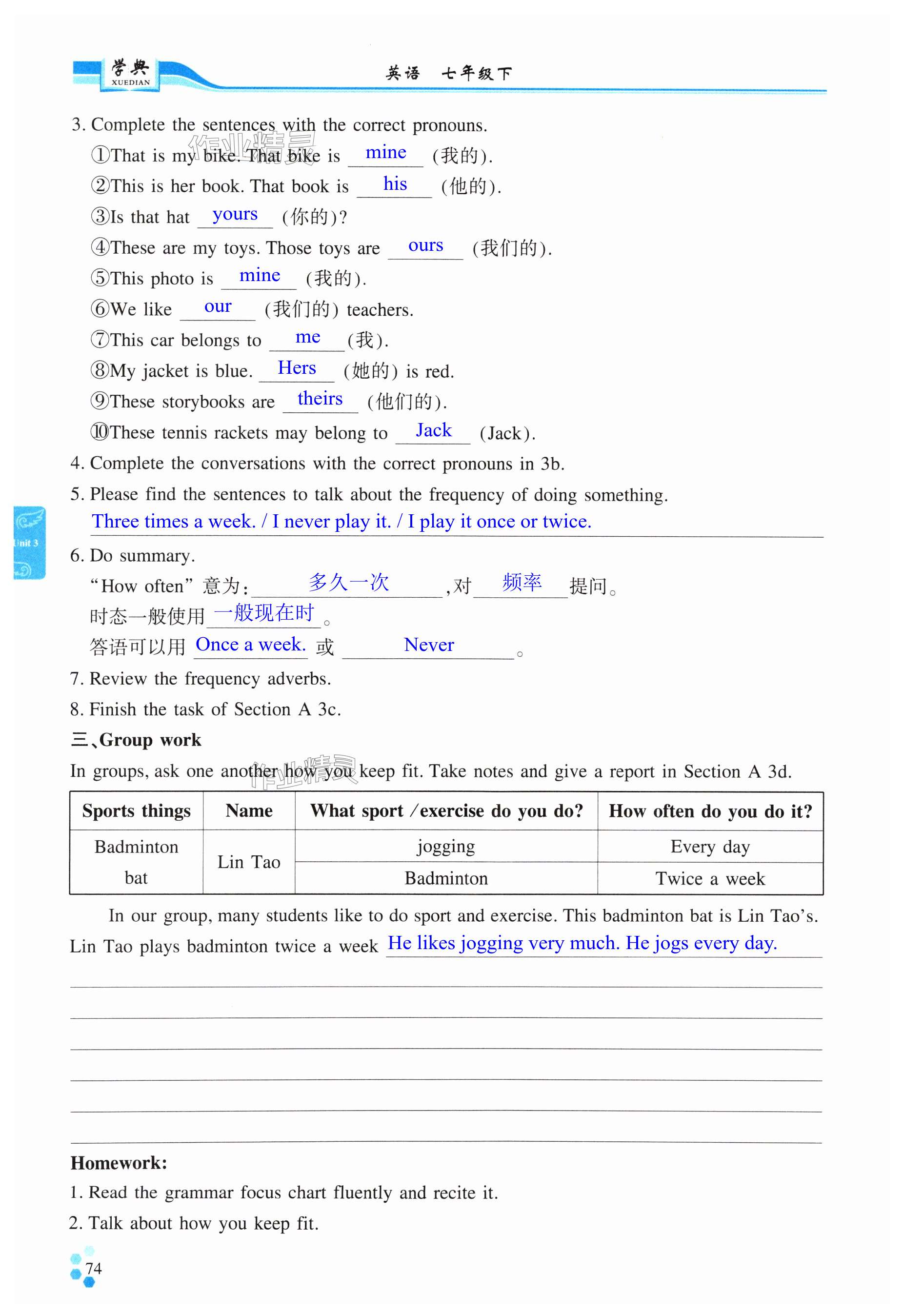 注:目前有些书本章节名称可能整理的还不是很完善,但都是按照顺序排列的,请同学们按照顺序仔细查找。练习册 2025年学典四川七年级英语下册人教版B版 答案主要是用来给同学们做完题方便对答案用的,请勿直接抄袭。
