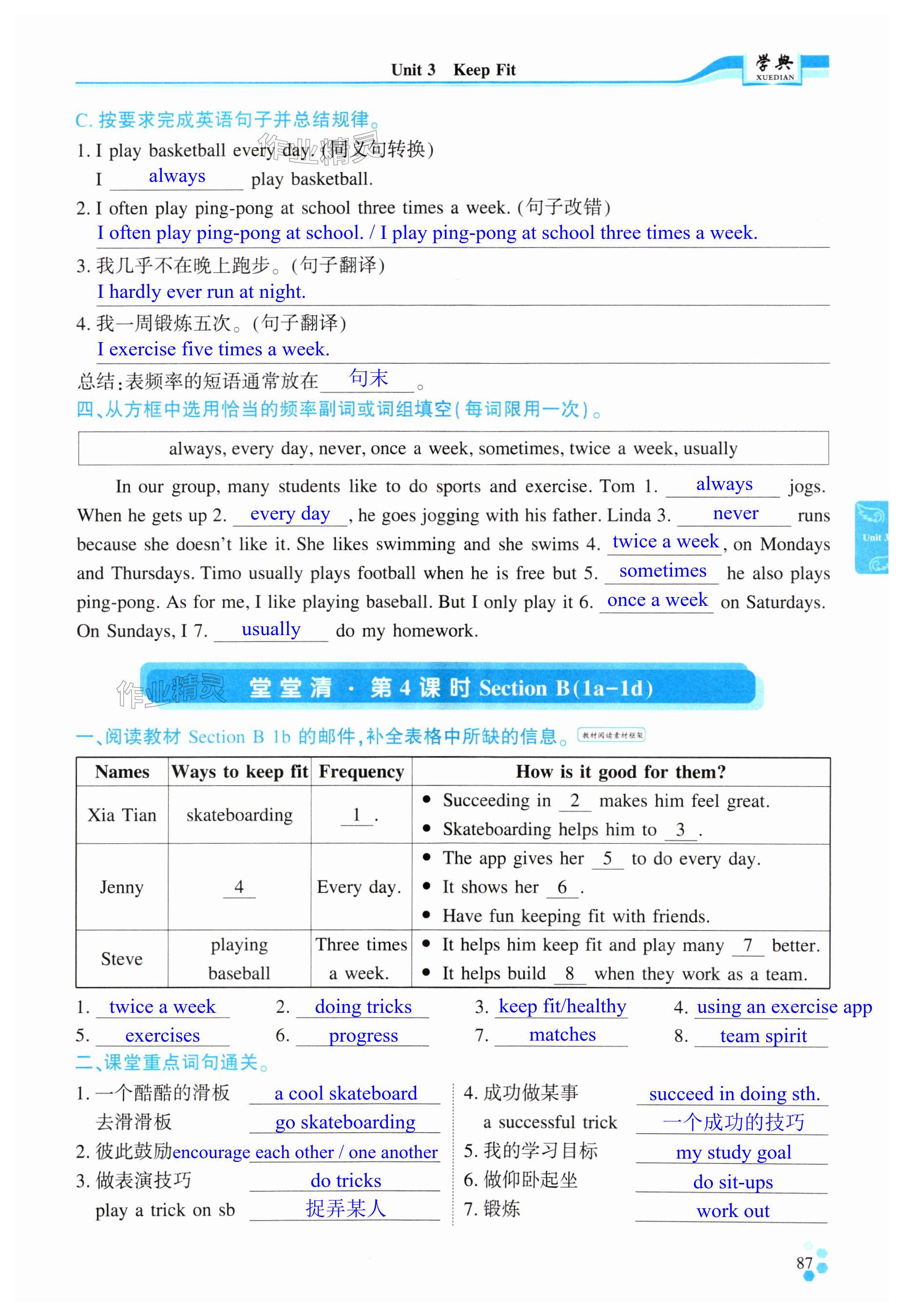 注:目前有些书本章节名称可能整理的还不是很完善,但都是按照顺序排列的,请同学们按照顺序仔细查找。练习册 2025年学典四川七年级英语下册人教版B版 答案主要是用来给同学们做完题方便对答案用的,请勿直接抄袭。