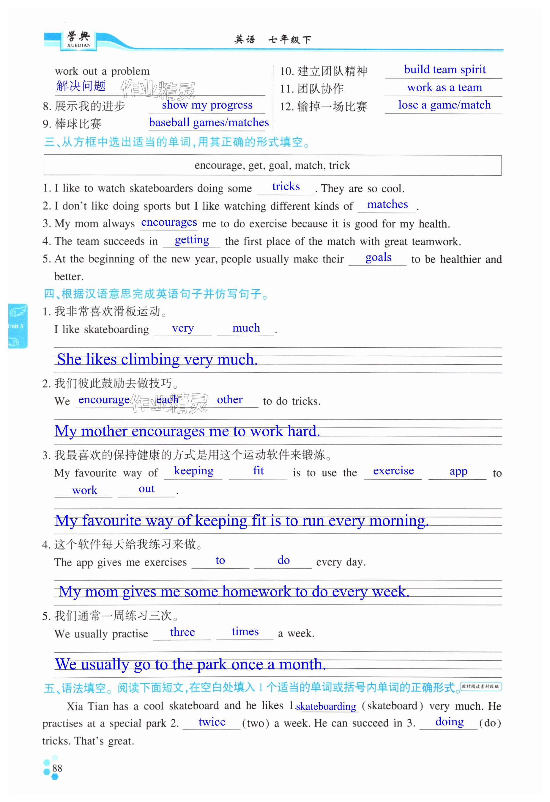 注:目前有些书本章节名称可能整理的还不是很完善,但都是按照顺序排列的,请同学们按照顺序仔细查找。练习册 2025年学典四川七年级英语下册人教版B版 答案主要是用来给同学们做完题方便对答案用的,请勿直接抄袭。