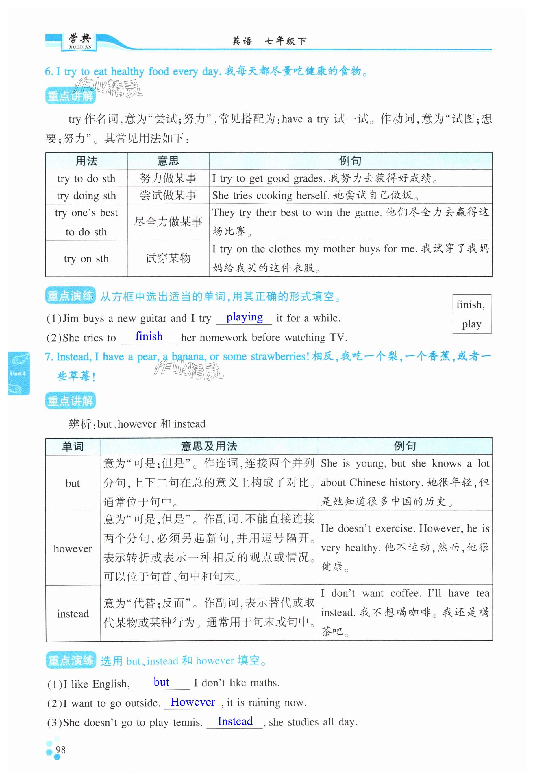 注:目前有些书本章节名称可能整理的还不是很完善,但都是按照顺序排列的,请同学们按照顺序仔细查找。练习册 2025年学典四川七年级英语下册人教版B版 答案主要是用来给同学们做完题方便对答案用的,请勿直接抄袭。