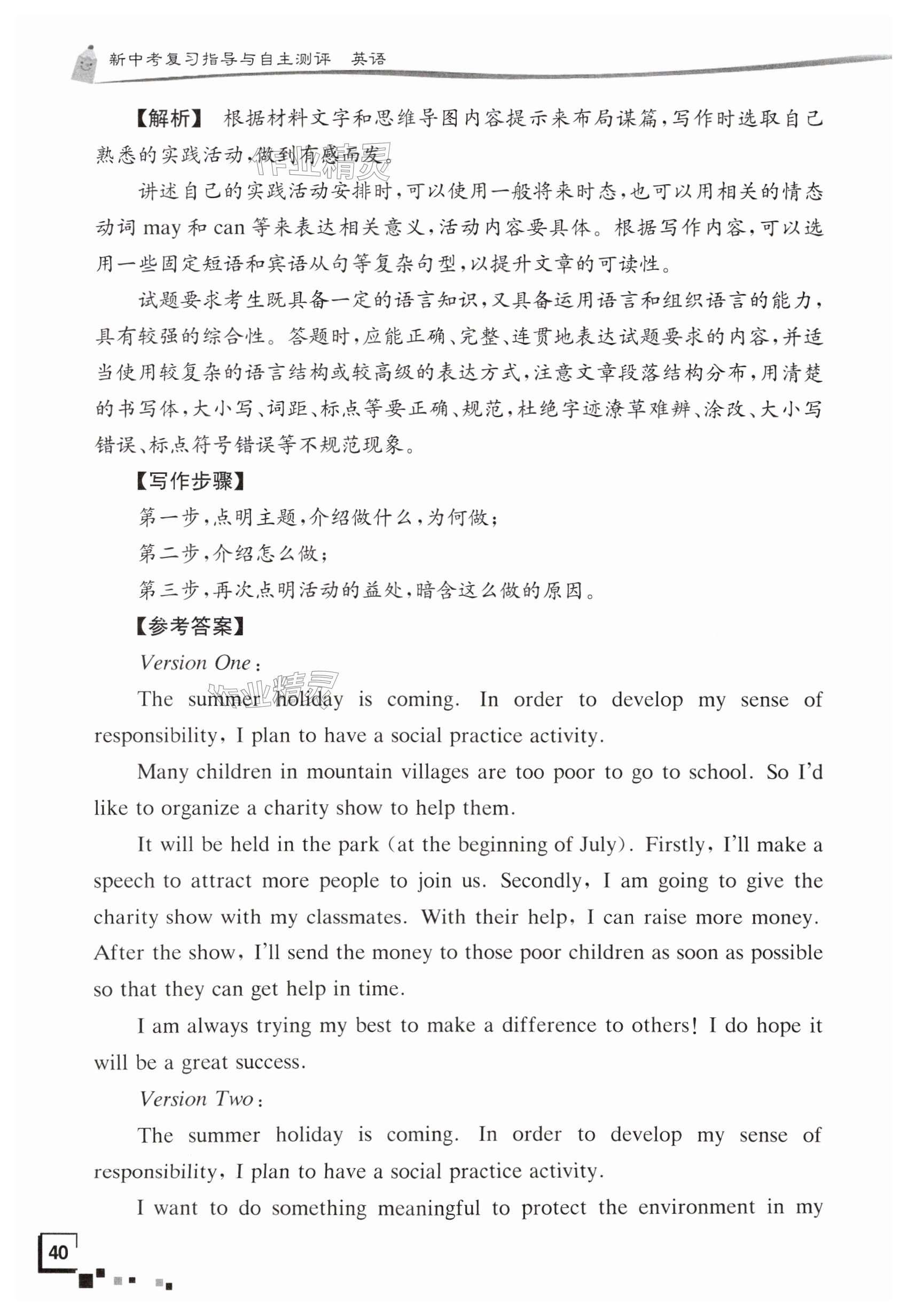 注:目前有些书本章节名称可能整理的还不是很完善,但都是按照顺序排列的,请同学们按照顺序仔细查找。练习册 2025年南通市新中考复习指导与自主测评英语 答案主要是用来给同学们做完题方便对答案用的,请勿直接抄袭。
