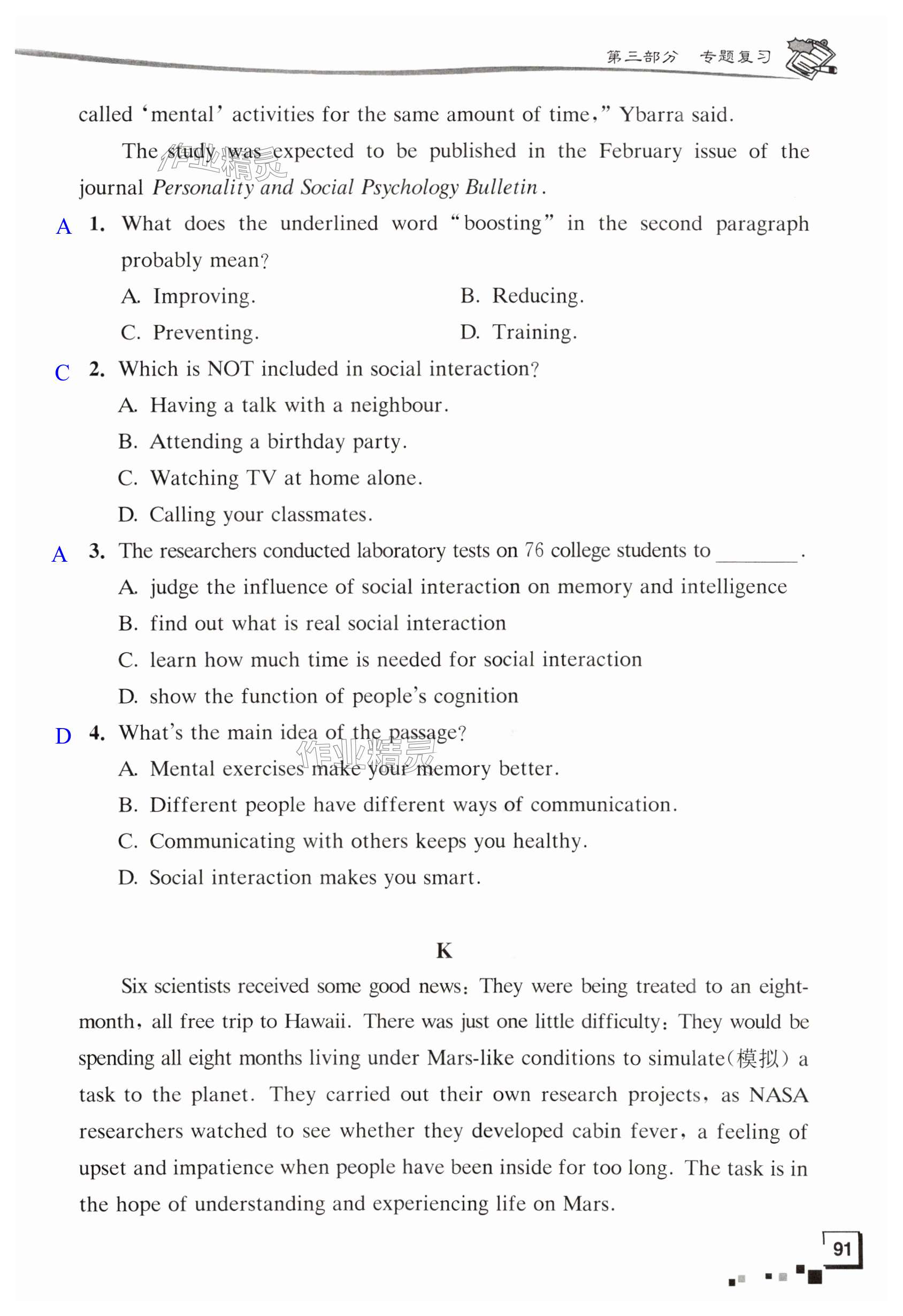 注:目前有些书本章节名称可能整理的还不是很完善,但都是按照顺序排列的,请同学们按照顺序仔细查找。练习册 2025年南通市新中考复习指导与自主测评英语 答案主要是用来给同学们做完题方便对答案用的,请勿直接抄袭。