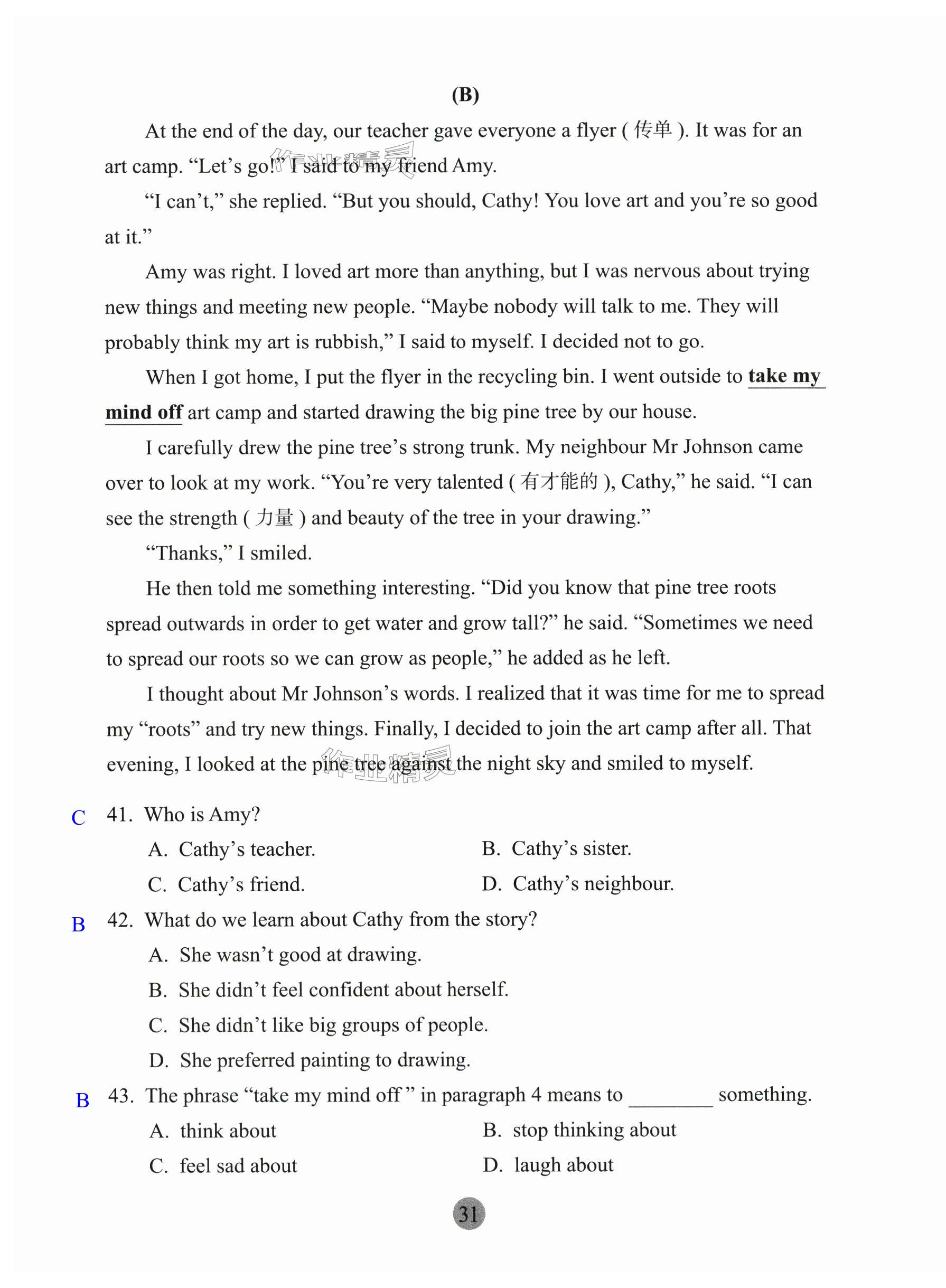 注:目前有些书本章节名称可能整理的还不是很完善,但都是按照顺序排列的,请同学们按照顺序仔细查找。练习册 2025年英语练习册上海教育出版社七年级下册沪教版B广州专版 答案主要是用来给同学们做完题方便对答案用的,请勿直接抄袭。