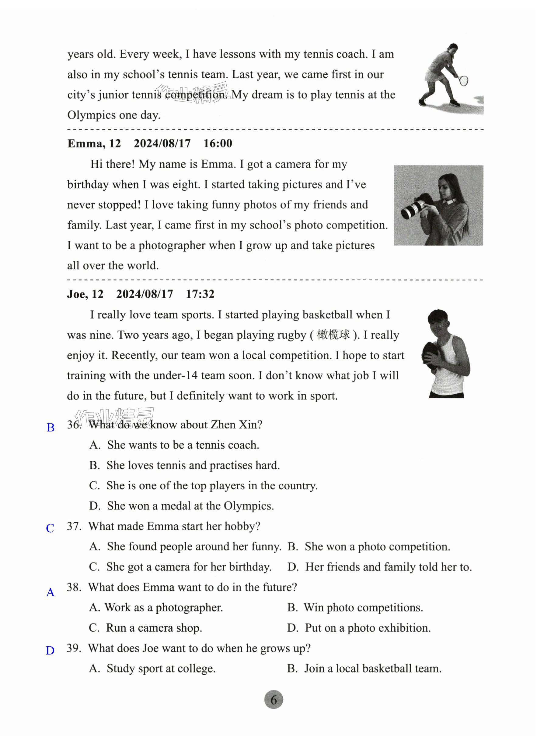注:目前有些书本章节名称可能整理的还不是很完善,但都是按照顺序排列的,请同学们按照顺序仔细查找。练习册 2025年英语练习册上海教育出版社七年级下册沪教版B广州专版 答案主要是用来给同学们做完题方便对答案用的,请勿直接抄袭。