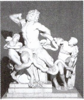 ⑤其次,据史诗,那两条长蛇绕腰三圈,绕颈两圈,而在雕像中它们仅绕着两腿。因为作者要从全身筋肉上表现出拉奥孔的苦痛,如果依史诗,筋肉方面所表现的苦痛就看不见了。同理,雕像的作者让拉奥孔父子赤裸着身体,虽然在史诗中拉奥孔穿着典祭官的衣服。
