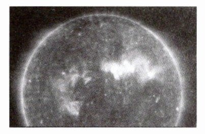 下图示意太阳大气表面某类太阳活动(图中白色区域)分布。据此完成1~2题。