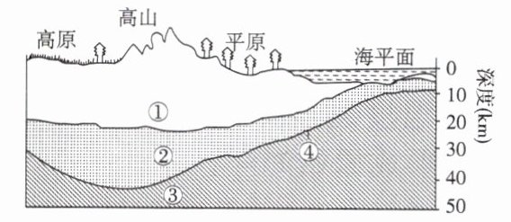 (3)图中④为_______面,该界面以下平均深度(指大陆部分)是_______km。