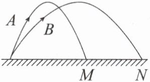 3.(多选)如图所示,从地面上同一位置抛出两小球A、B,分别落在地面上的M、N点,两球运动的最大高度相同. 空气阻力不计,则 ( )