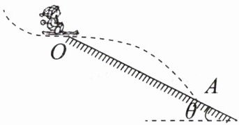 [典例 2] 如图所示,跳台滑雪运动员经过一段加速滑行后从$O$点水平飞出,经过$3.0\ s$落到斜坡上的$A$点。已知$O$点是斜坡的起点,斜坡与水平面的夹角$\theta = 37^{\circ}$,运动员的质量$m = 50\ kg$。不计空气阻力($\sin37^{\circ}=0.60$,$\cos37^{\circ}=0.80$,$g$取$10\ m/s^2$)。求: