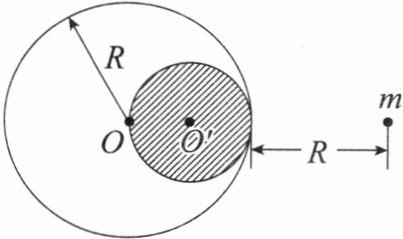[典例 3] 有一质量为$M$、半径为$R$、密度均匀的球体,在距离球心$O$为$2R$的地方有一质量为$m$的质点. 现从$M$中挖去半径为$\frac{1}{2}R$、球心为$O'$的球体,且$O$、$O'$与质点$m$位于同一直线上,如图所示,则剩余部分对$m$的万有引力大小为( )