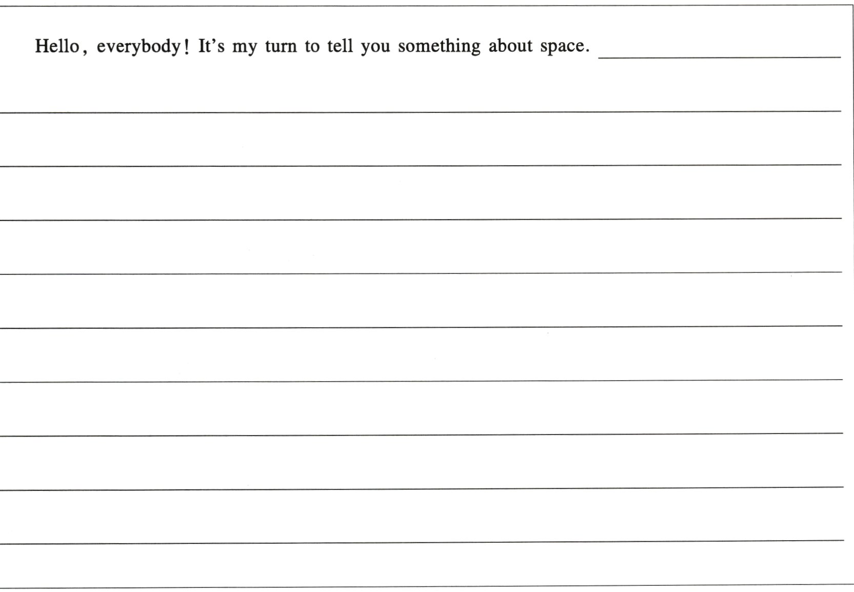 Hello, everybody! It’s my turn to tell you something about space. As you know, the universe is very large. There are many galaxies in the universe. For example, the Galaxy has billions of stars. The sun is one of them in the solar system. The earth goes round the sun and the moon goes round the earth.