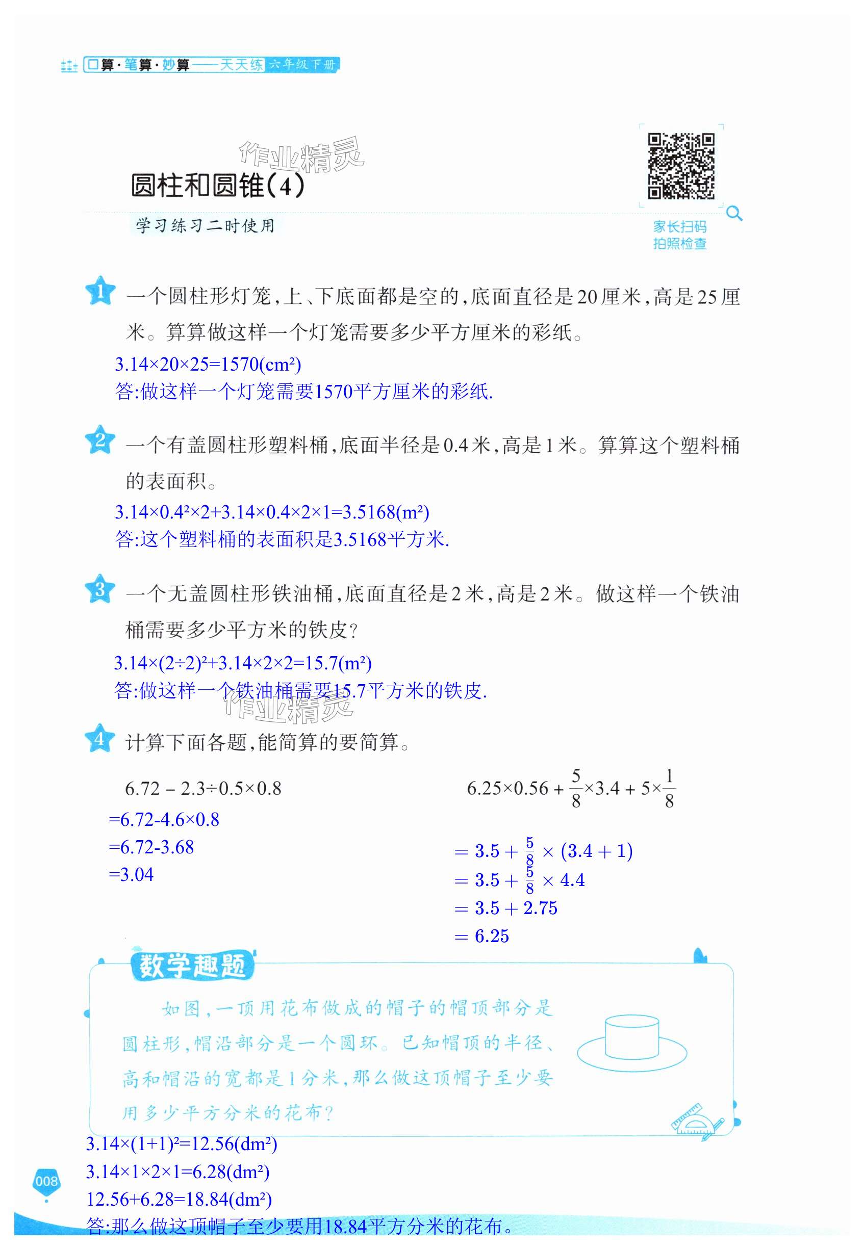 注:目前有些书本章节名称可能整理的还不是很完善,但都是按照顺序排列的,请同学们按照顺序仔细查找。练习册 2025年口算笔算妙算天天练六年级数学下册苏教版 答案主要是用来给同学们做完题方便对答案用的,请勿直接抄袭。