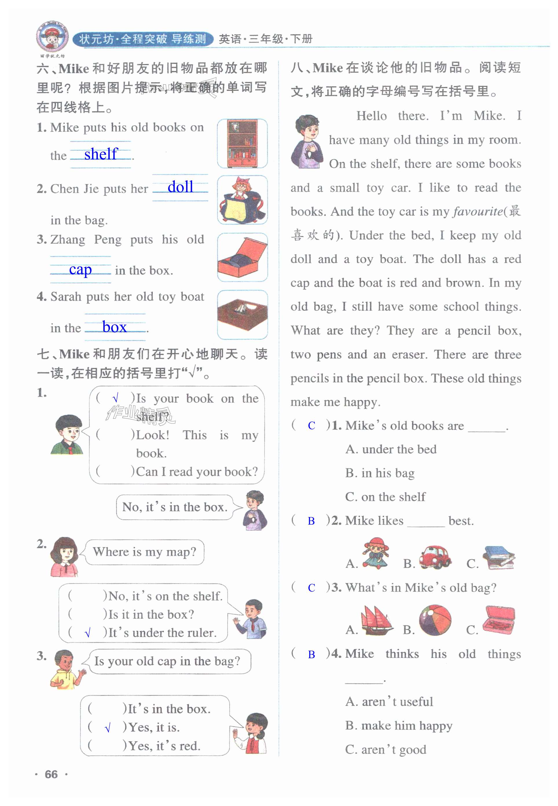 注:目前有些书本章节名称可能整理的还不是很完善,但都是按照顺序排列的,请同学们按照顺序仔细查找。练习册 2025年状元坊全程突破导练测三年级英语下册人教版佛山专版 答案主要是用来给同学们做完题方便对答案用的,请勿直接抄袭。