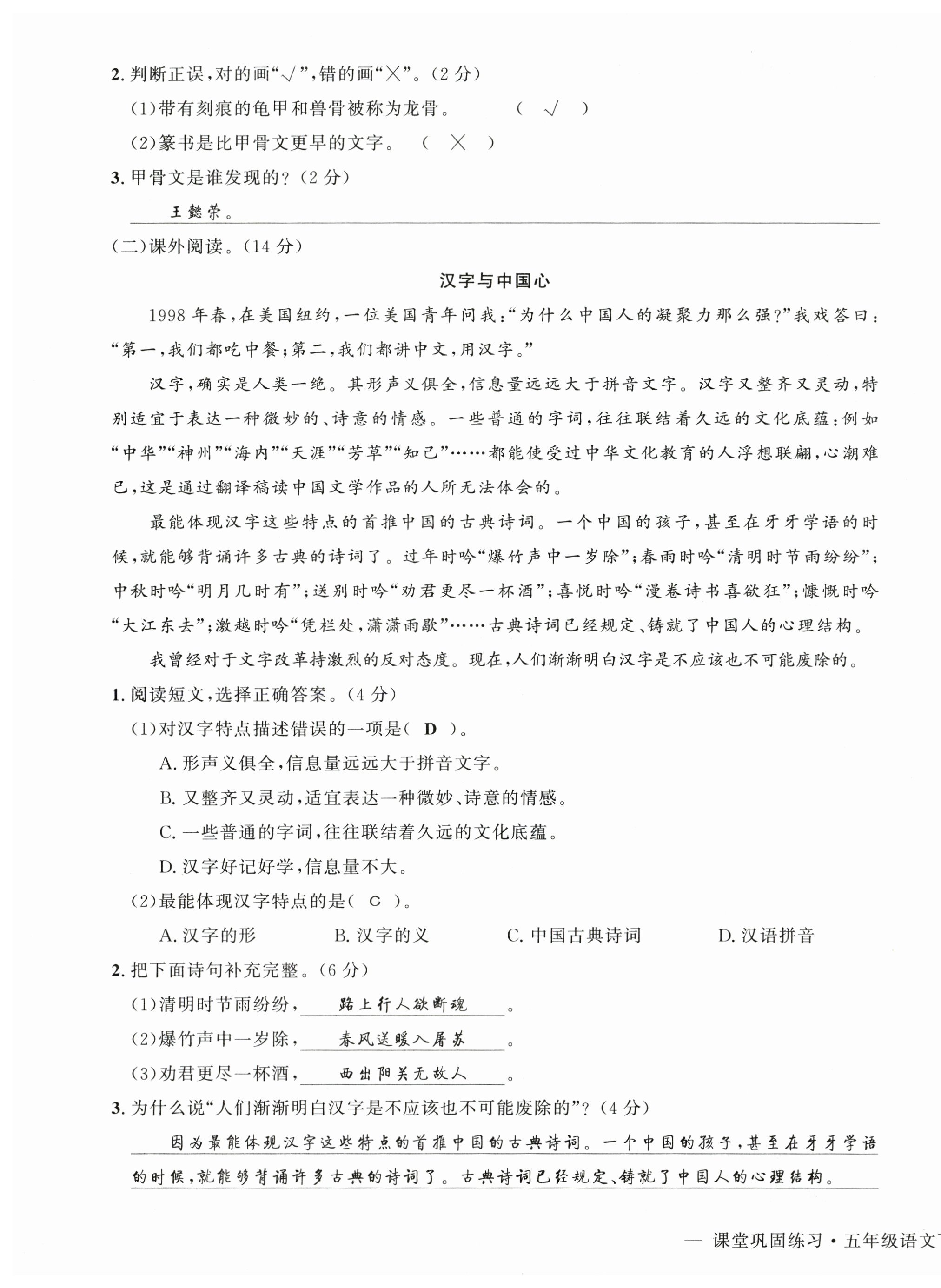注:目前有些书本章节名称可能整理的还不是很完善,但都是按照顺序排列的,请同学们按照顺序仔细查找。练习册 2025年课堂巩固练习五年级语文下册人教版 答案主要是用来给同学们做完题方便对答案用的,请勿直接抄袭。