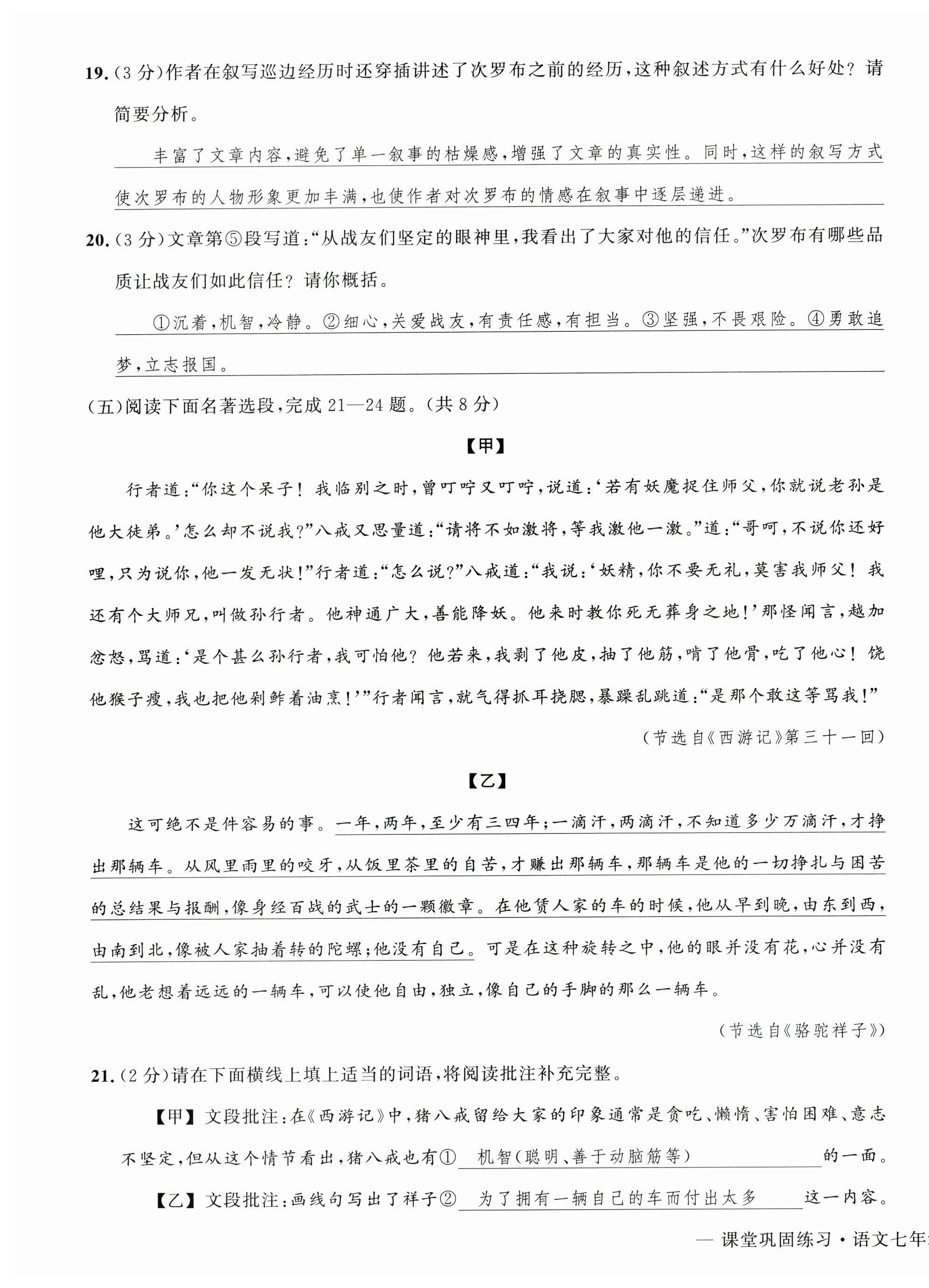 注:目前有些书本章节名称可能整理的还不是很完善,但都是按照顺序排列的,请同学们按照顺序仔细查找。练习册 2025年课堂巩固练习七年级语文下册人教版 答案主要是用来给同学们做完题方便对答案用的,请勿直接抄袭。