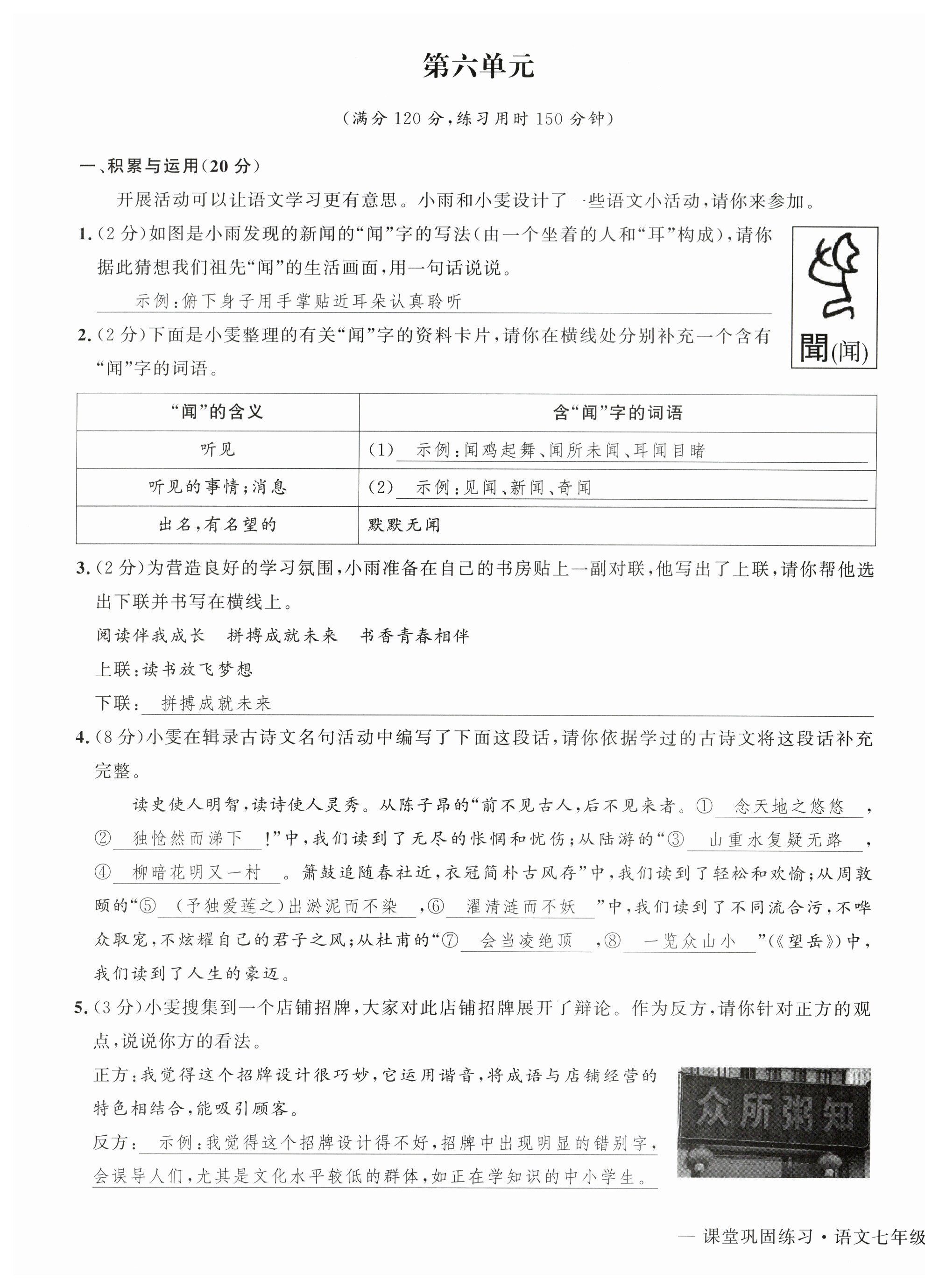 注:目前有些书本章节名称可能整理的还不是很完善,但都是按照顺序排列的,请同学们按照顺序仔细查找。练习册 2025年课堂巩固练习七年级语文下册人教版 答案主要是用来给同学们做完题方便对答案用的,请勿直接抄袭。