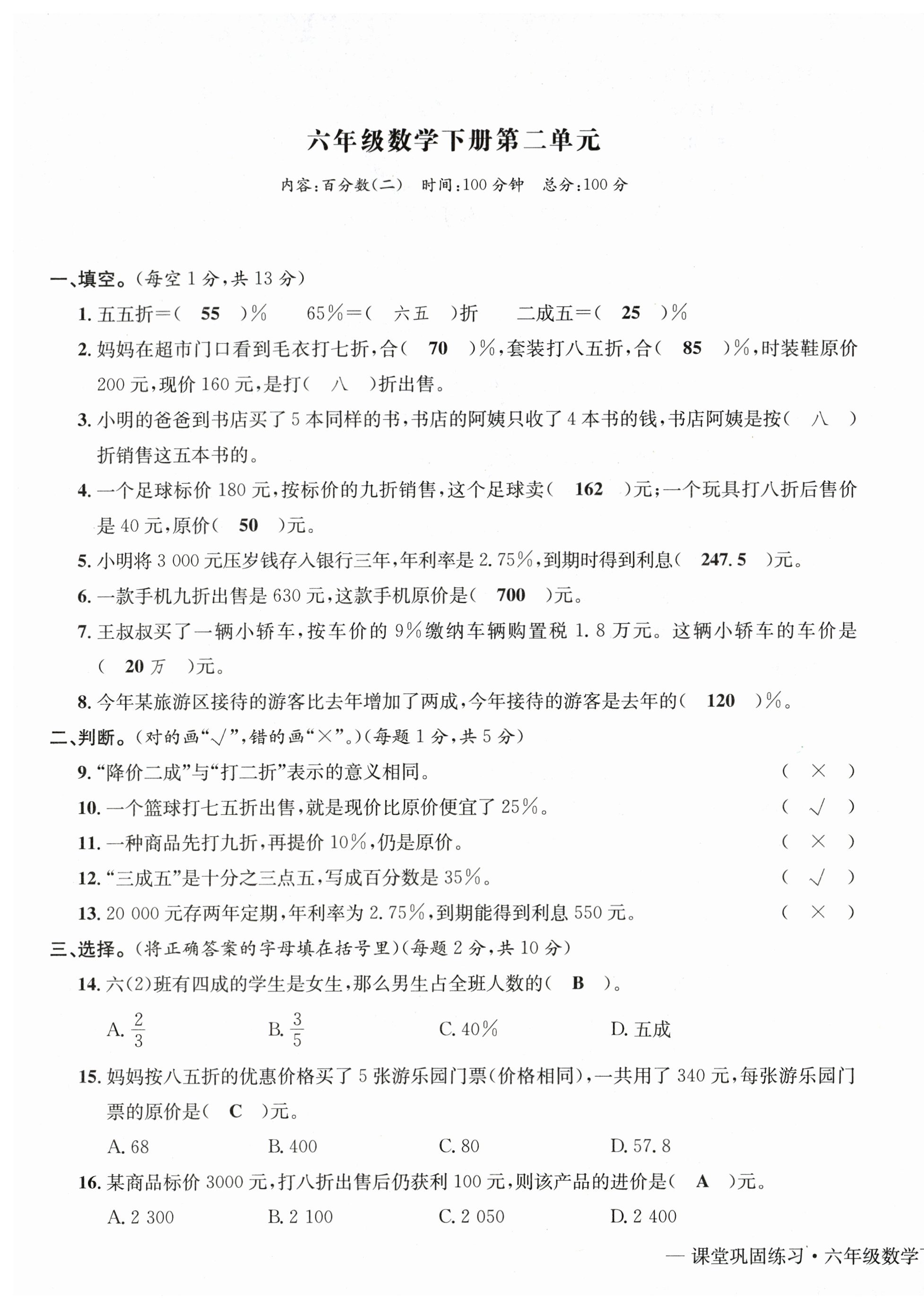 注:目前有些书本章节名称可能整理的还不是很完善,但都是按照顺序排列的,请同学们按照顺序仔细查找。练习册 2025年课堂巩固练习六年级数学下册人教版 答案主要是用来给同学们做完题方便对答案用的,请勿直接抄袭。