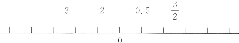 三 先在直线上表示下面各数(3 -2 -0.5 $\frac{3}{2}$),再填一填。