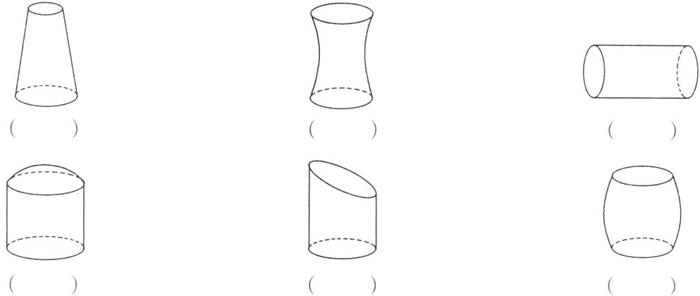 1. 判断下面的图形哪些是圆柱,在括号里画“√”。