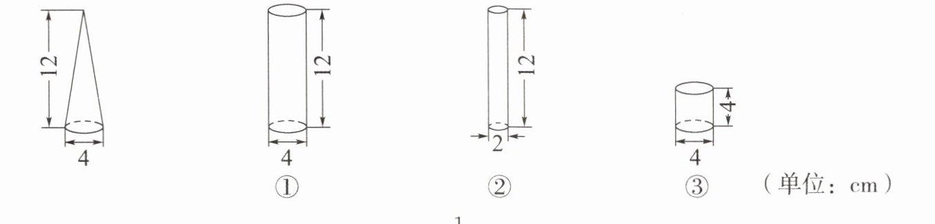 (2)圆柱①的体积是圆柱②的体积的( )倍,是圆柱③的体积的( )倍。
