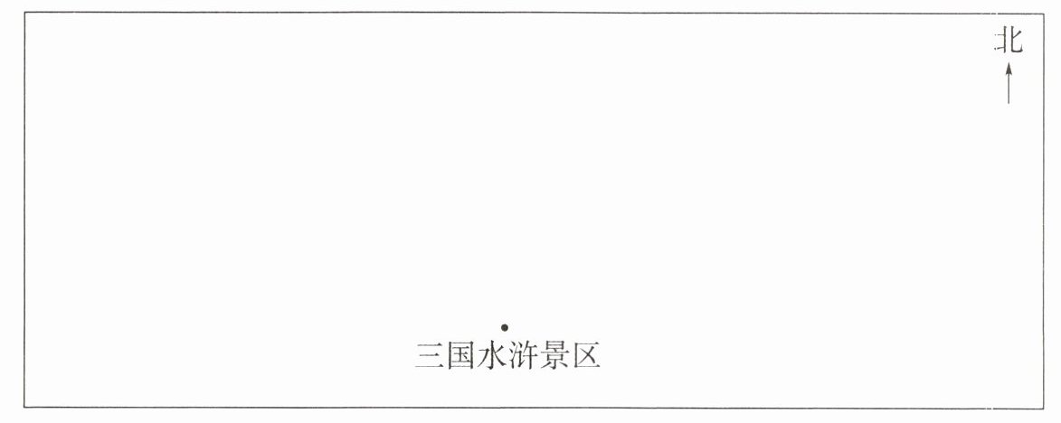 (1)三国水浒景区的正东方300 m处是明清宫苑景区,正北方200 m处是江南水乡景区,西偏北45°方向150 m处是旧上海景区。先确定比例尺,再在平面图中画出上述各景区的位置。