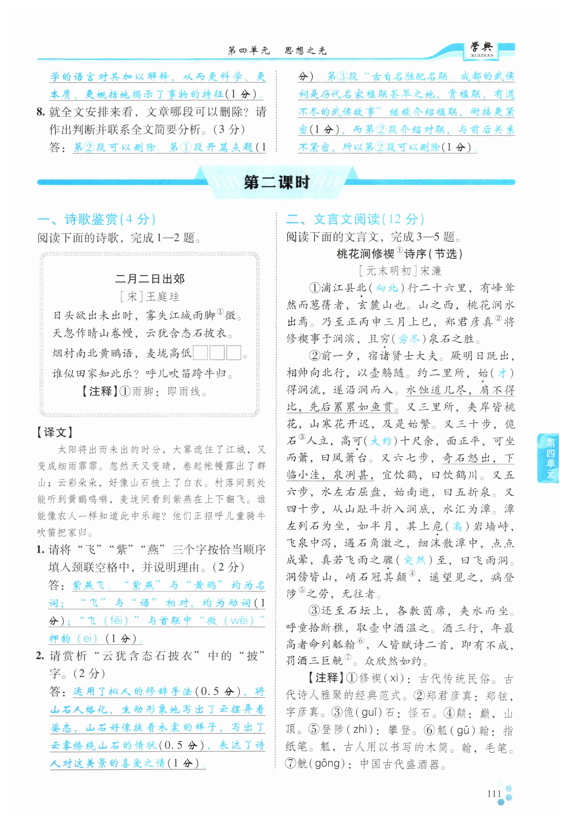 注:目前有些书本章节名称可能整理的还不是很完善,但都是按照顺序排列的,请同学们按照顺序仔细查找。练习册 2025年学典四川八年级语文下册人教版B版 答案主要是用来给同学们做完题方便对答案用的,请勿直接抄袭。