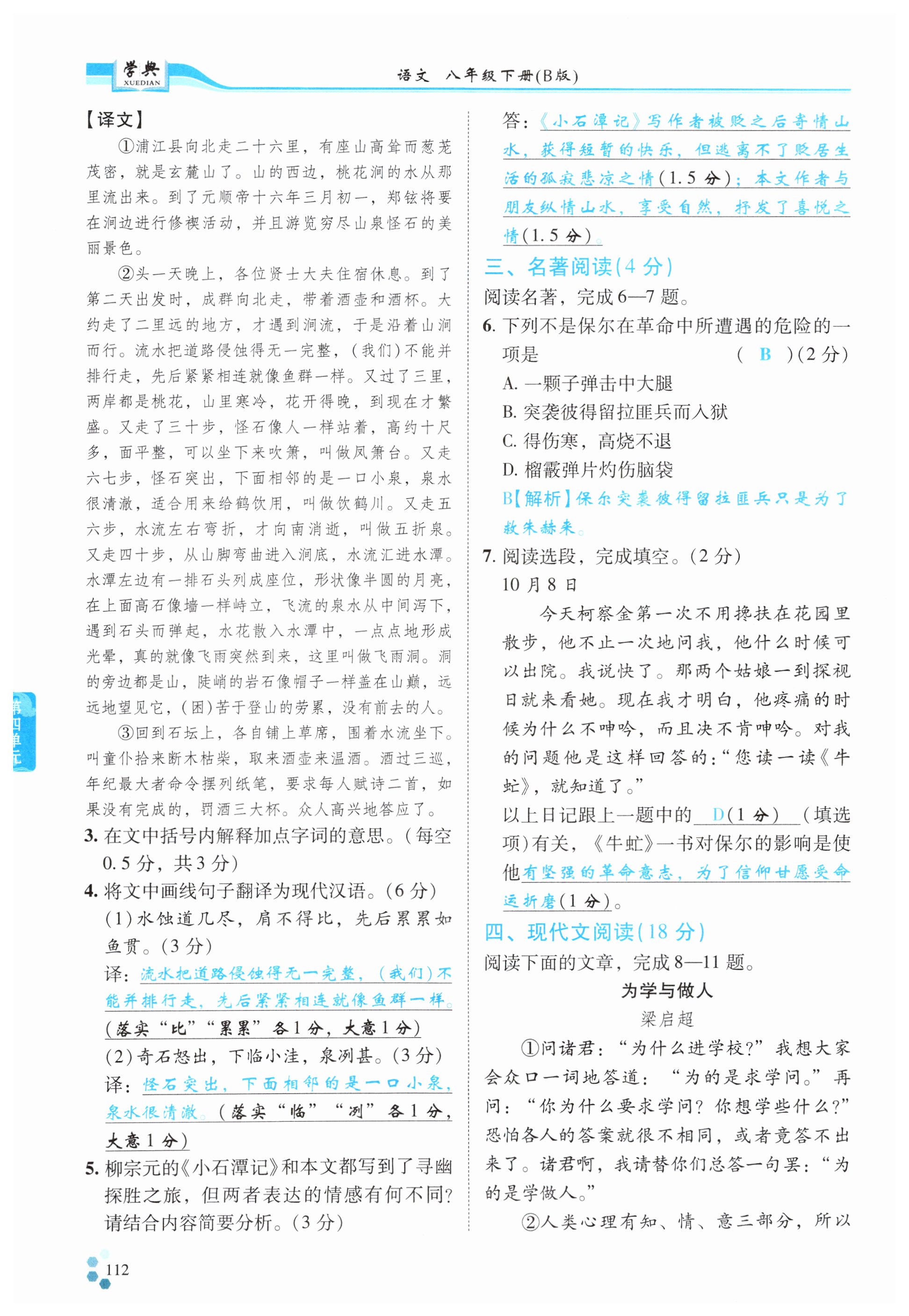 注:目前有些书本章节名称可能整理的还不是很完善,但都是按照顺序排列的,请同学们按照顺序仔细查找。练习册 2025年学典四川八年级语文下册人教版B版 答案主要是用来给同学们做完题方便对答案用的,请勿直接抄袭。