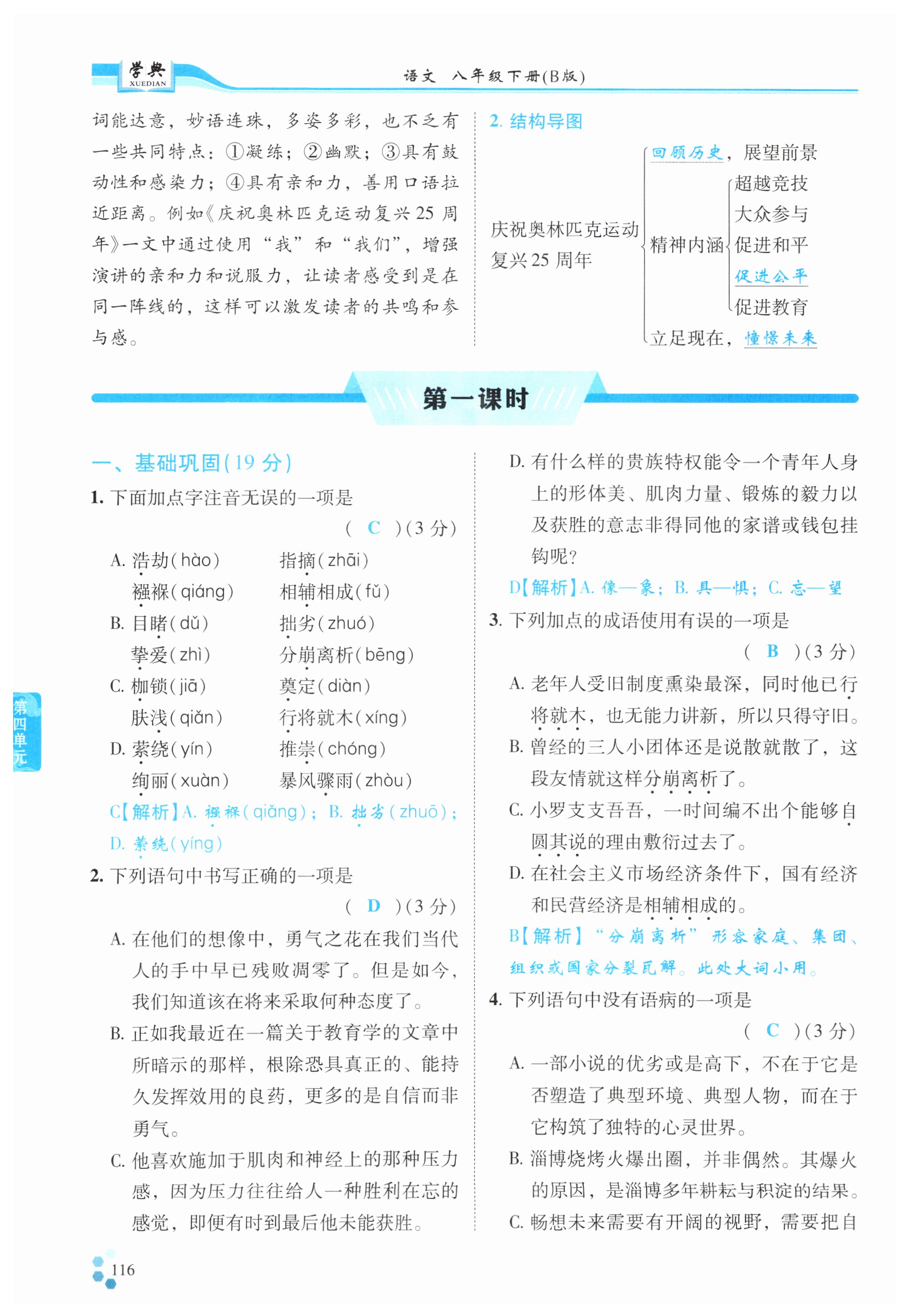 注:目前有些书本章节名称可能整理的还不是很完善,但都是按照顺序排列的,请同学们按照顺序仔细查找。练习册 2025年学典四川八年级语文下册人教版B版 答案主要是用来给同学们做完题方便对答案用的,请勿直接抄袭。