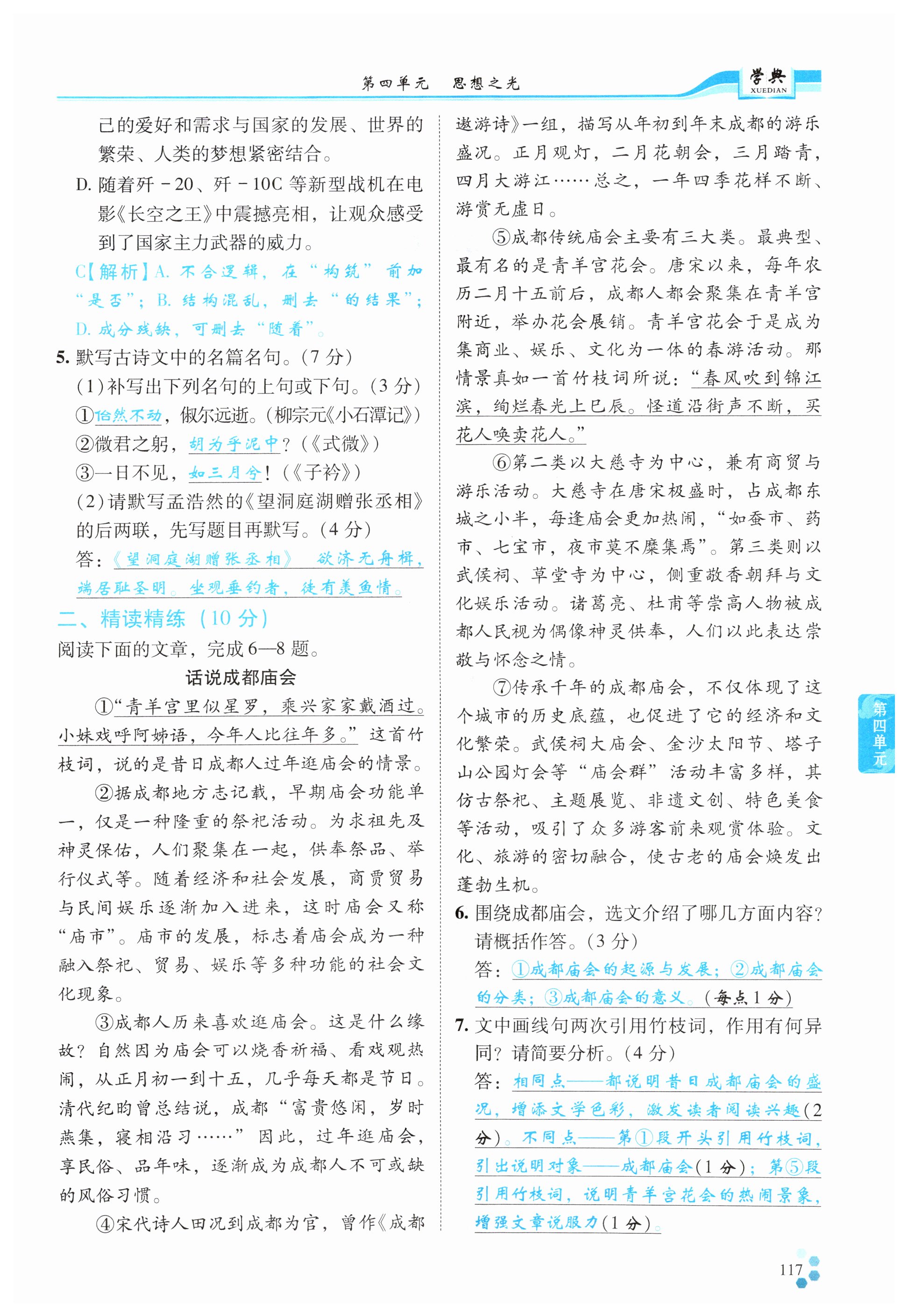 注:目前有些书本章节名称可能整理的还不是很完善,但都是按照顺序排列的,请同学们按照顺序仔细查找。练习册 2025年学典四川八年级语文下册人教版B版 答案主要是用来给同学们做完题方便对答案用的,请勿直接抄袭。