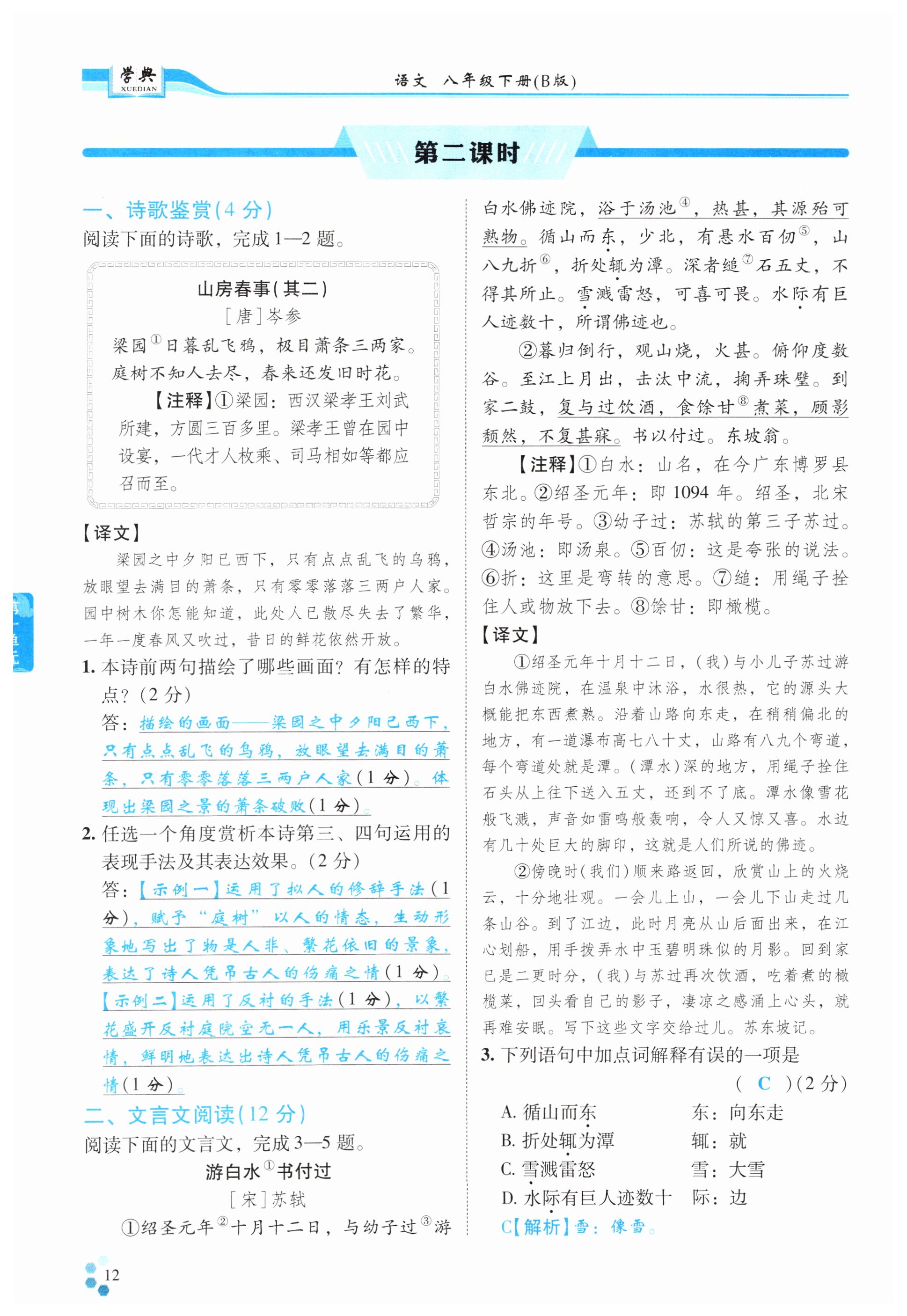 注:目前有些书本章节名称可能整理的还不是很完善,但都是按照顺序排列的,请同学们按照顺序仔细查找。练习册 2025年学典四川八年级语文下册人教版B版 答案主要是用来给同学们做完题方便对答案用的,请勿直接抄袭。