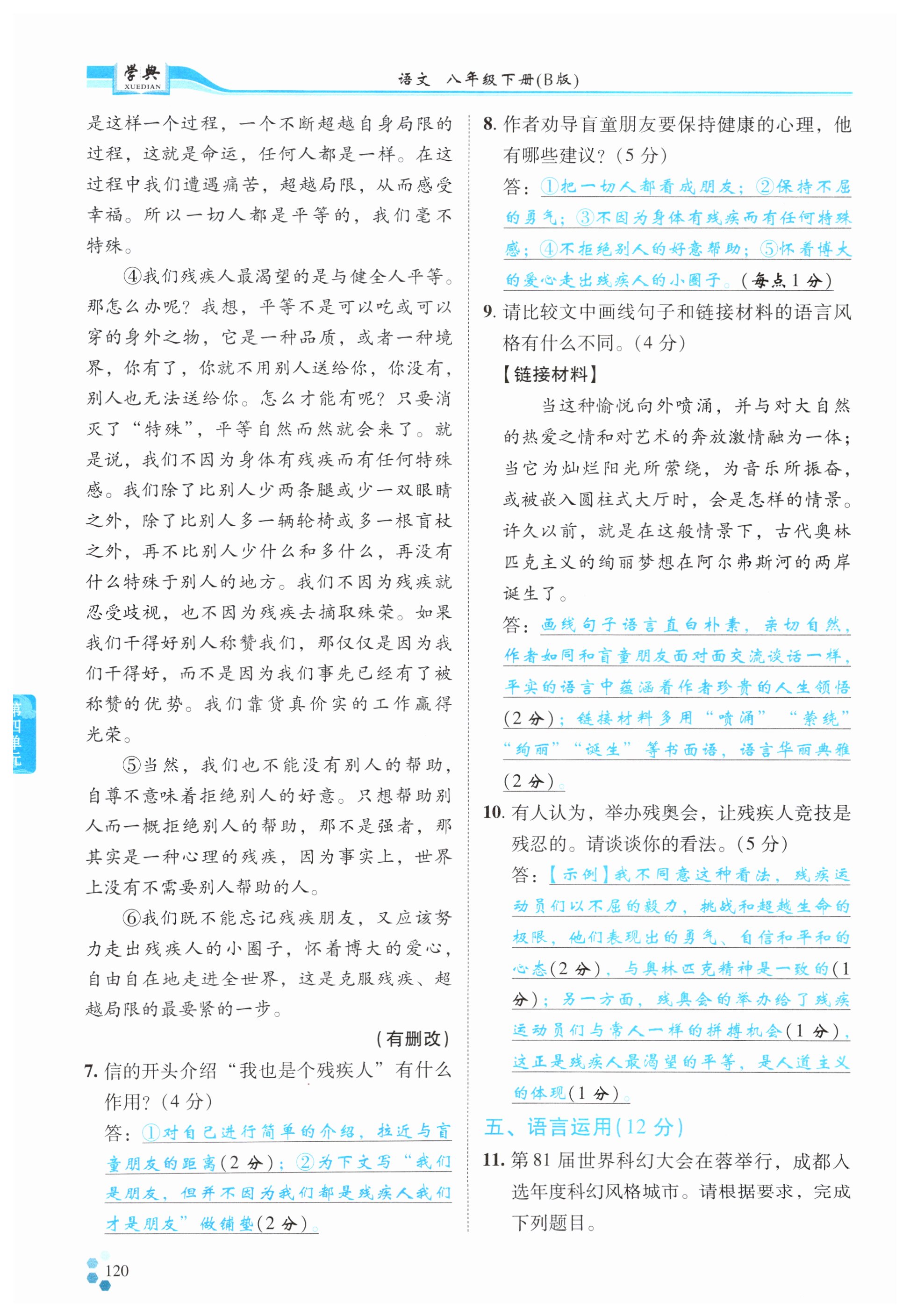 注:目前有些书本章节名称可能整理的还不是很完善,但都是按照顺序排列的,请同学们按照顺序仔细查找。练习册 2025年学典四川八年级语文下册人教版B版 答案主要是用来给同学们做完题方便对答案用的,请勿直接抄袭。
