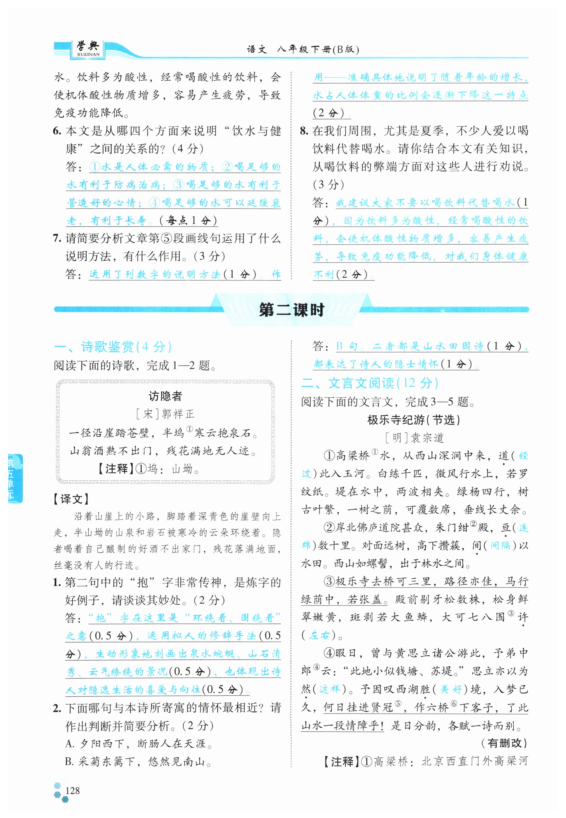 注:目前有些书本章节名称可能整理的还不是很完善,但都是按照顺序排列的,请同学们按照顺序仔细查找。练习册 2025年学典四川八年级语文下册人教版B版 答案主要是用来给同学们做完题方便对答案用的,请勿直接抄袭。