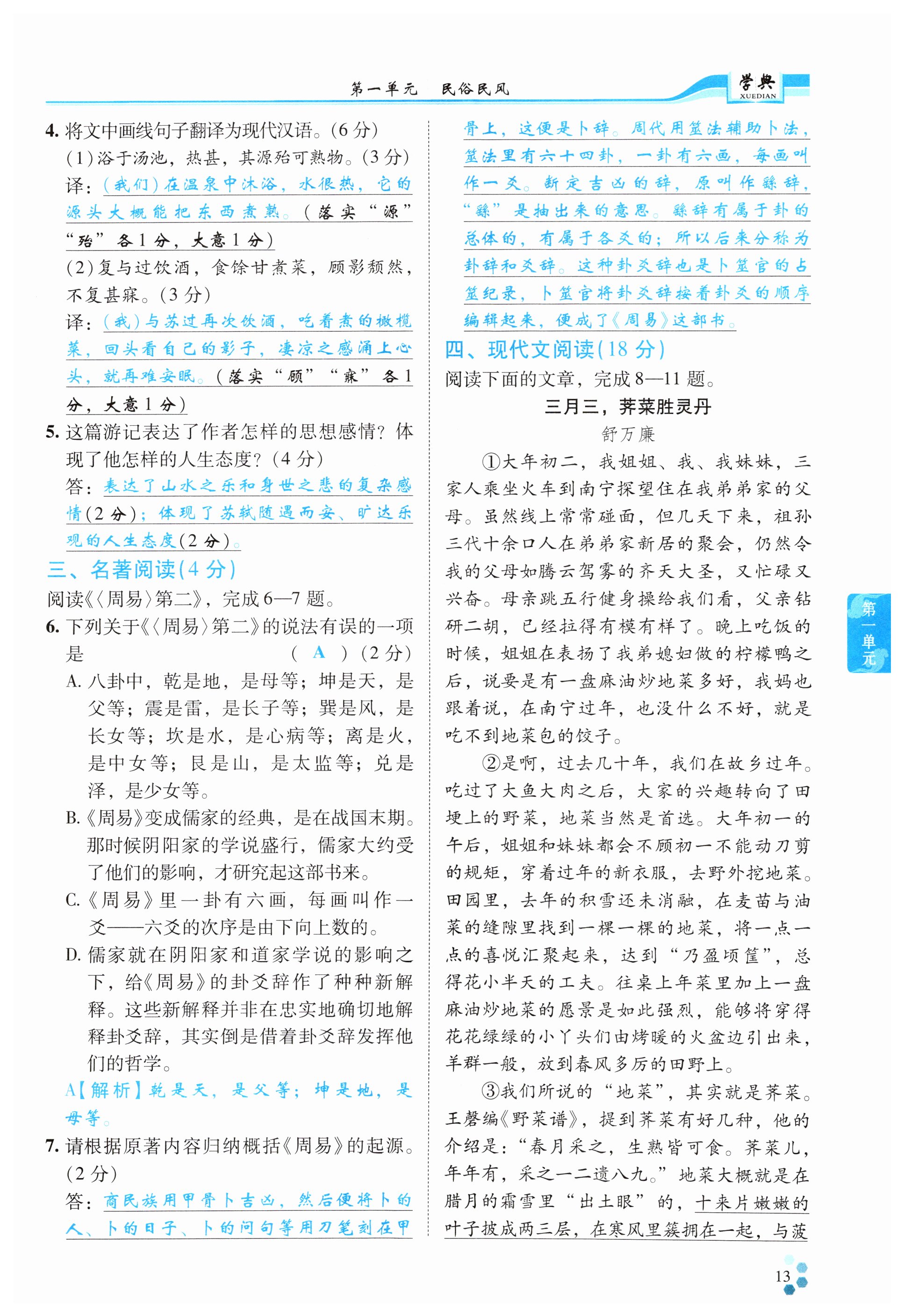 注:目前有些书本章节名称可能整理的还不是很完善,但都是按照顺序排列的,请同学们按照顺序仔细查找。练习册 2025年学典四川八年级语文下册人教版B版 答案主要是用来给同学们做完题方便对答案用的,请勿直接抄袭。