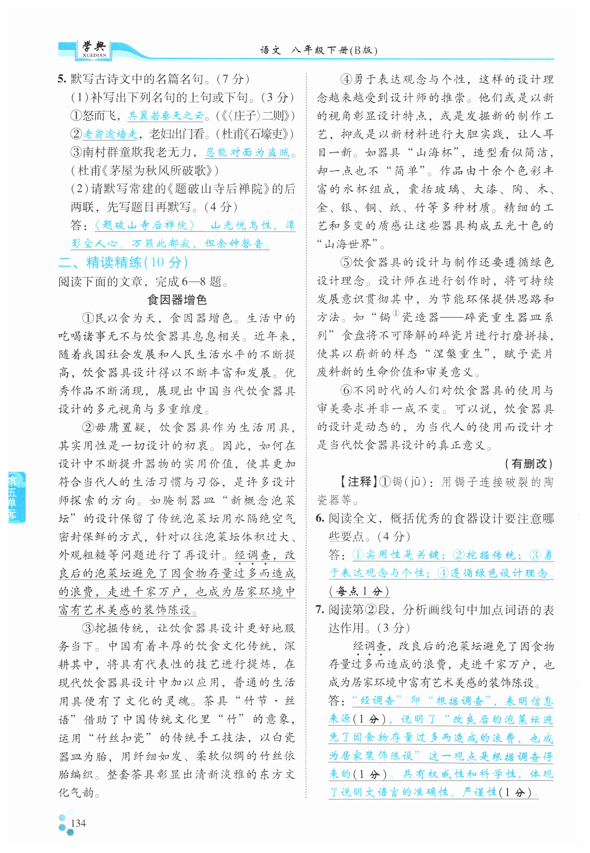 注:目前有些书本章节名称可能整理的还不是很完善,但都是按照顺序排列的,请同学们按照顺序仔细查找。练习册 2025年学典四川八年级语文下册人教版B版 答案主要是用来给同学们做完题方便对答案用的,请勿直接抄袭。