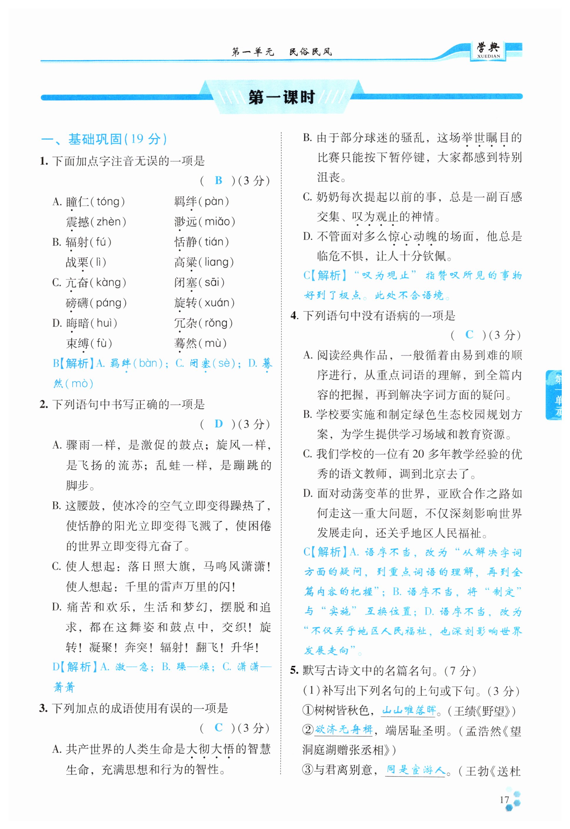 注:目前有些书本章节名称可能整理的还不是很完善,但都是按照顺序排列的,请同学们按照顺序仔细查找。练习册 2025年学典四川八年级语文下册人教版B版 答案主要是用来给同学们做完题方便对答案用的,请勿直接抄袭。