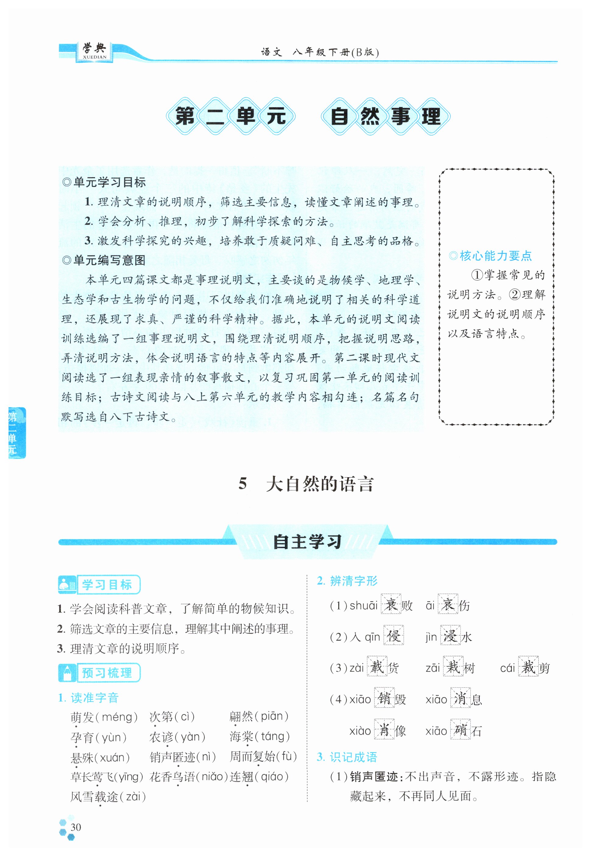 注:目前有些书本章节名称可能整理的还不是很完善,但都是按照顺序排列的,请同学们按照顺序仔细查找。练习册 2025年学典四川八年级语文下册人教版B版 答案主要是用来给同学们做完题方便对答案用的,请勿直接抄袭。