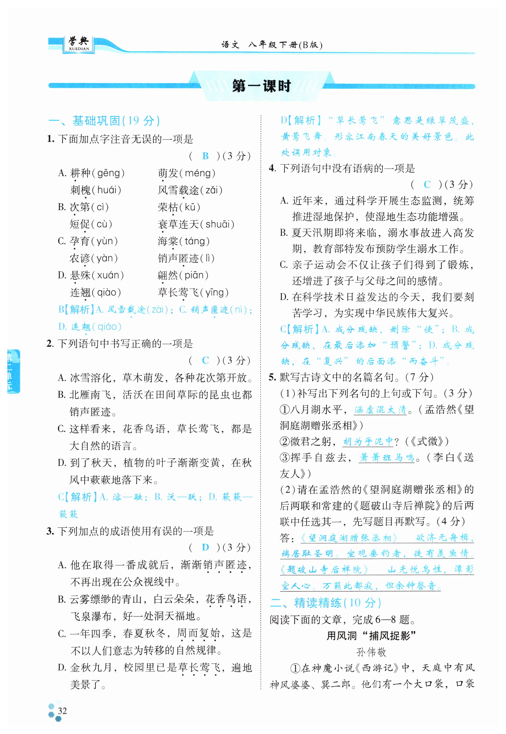 注:目前有些书本章节名称可能整理的还不是很完善,但都是按照顺序排列的,请同学们按照顺序仔细查找。练习册 2025年学典四川八年级语文下册人教版B版 答案主要是用来给同学们做完题方便对答案用的,请勿直接抄袭。