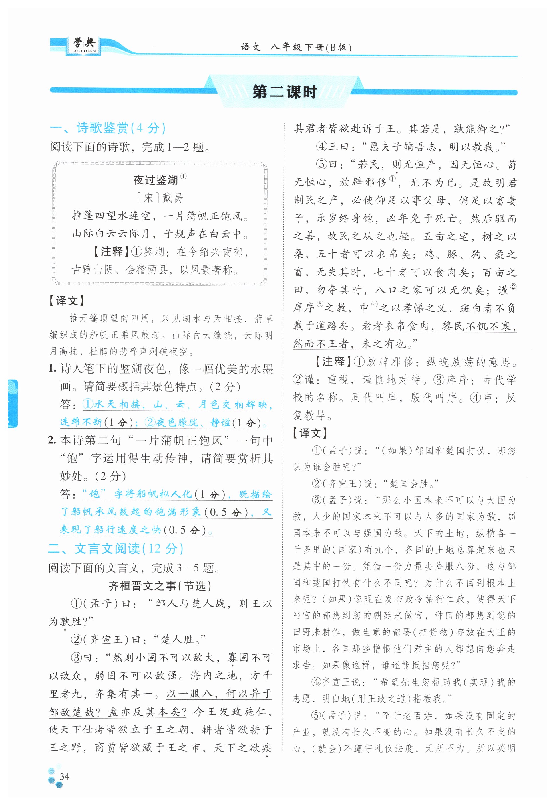 注:目前有些书本章节名称可能整理的还不是很完善,但都是按照顺序排列的,请同学们按照顺序仔细查找。练习册 2025年学典四川八年级语文下册人教版B版 答案主要是用来给同学们做完题方便对答案用的,请勿直接抄袭。