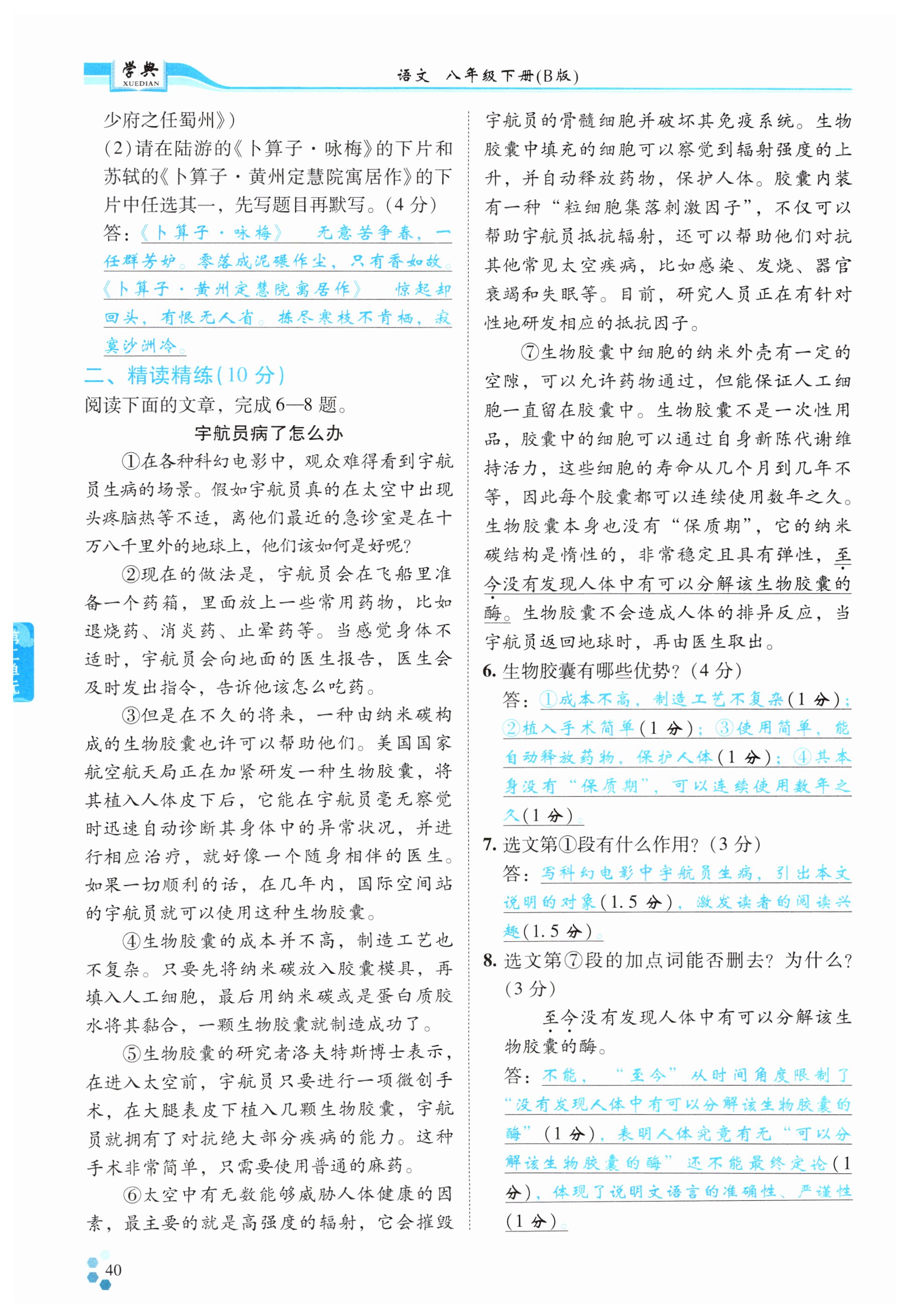 注:目前有些书本章节名称可能整理的还不是很完善,但都是按照顺序排列的,请同学们按照顺序仔细查找。练习册 2025年学典四川八年级语文下册人教版B版 答案主要是用来给同学们做完题方便对答案用的,请勿直接抄袭。