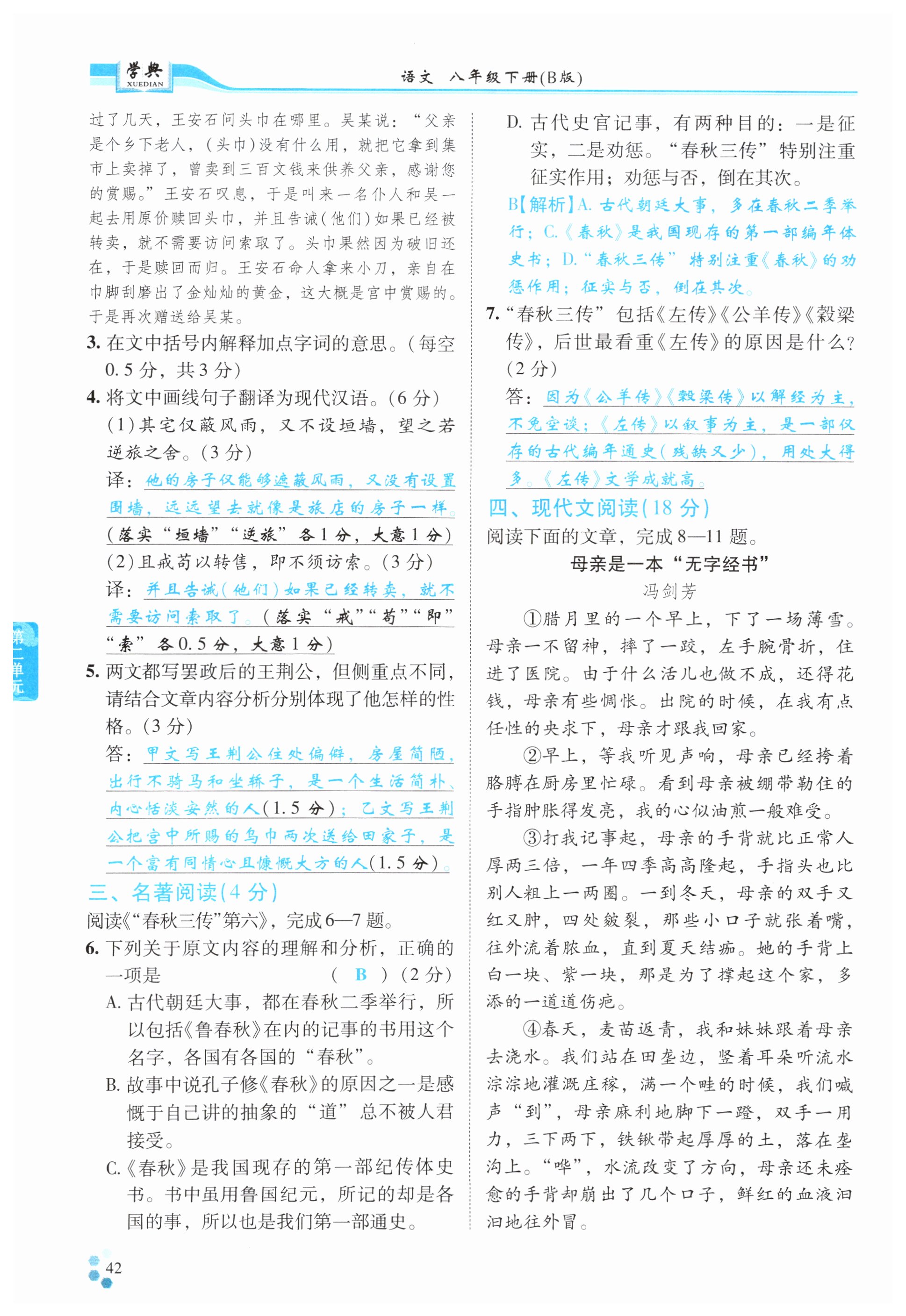 注:目前有些书本章节名称可能整理的还不是很完善,但都是按照顺序排列的,请同学们按照顺序仔细查找。练习册 2025年学典四川八年级语文下册人教版B版 答案主要是用来给同学们做完题方便对答案用的,请勿直接抄袭。
