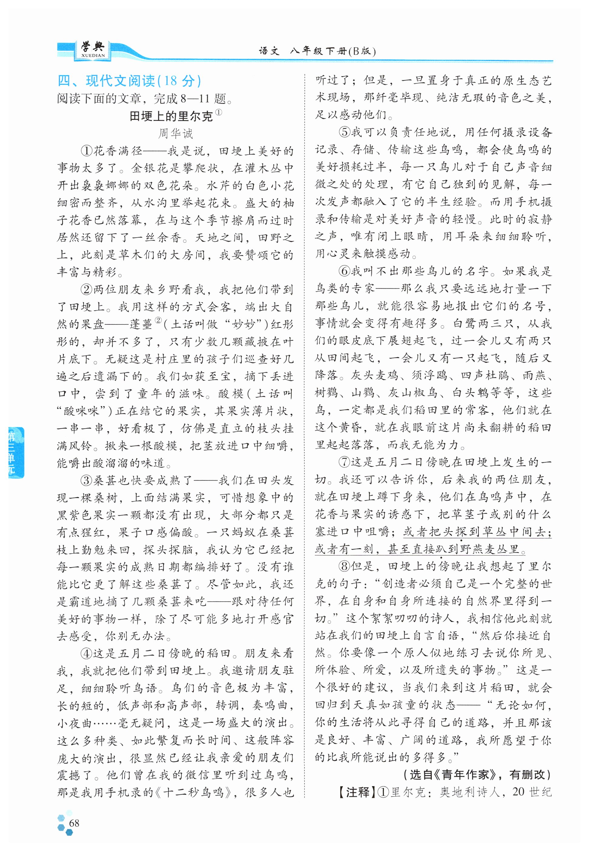 注:目前有些书本章节名称可能整理的还不是很完善,但都是按照顺序排列的,请同学们按照顺序仔细查找。练习册 2025年学典四川八年级语文下册人教版B版 答案主要是用来给同学们做完题方便对答案用的,请勿直接抄袭。