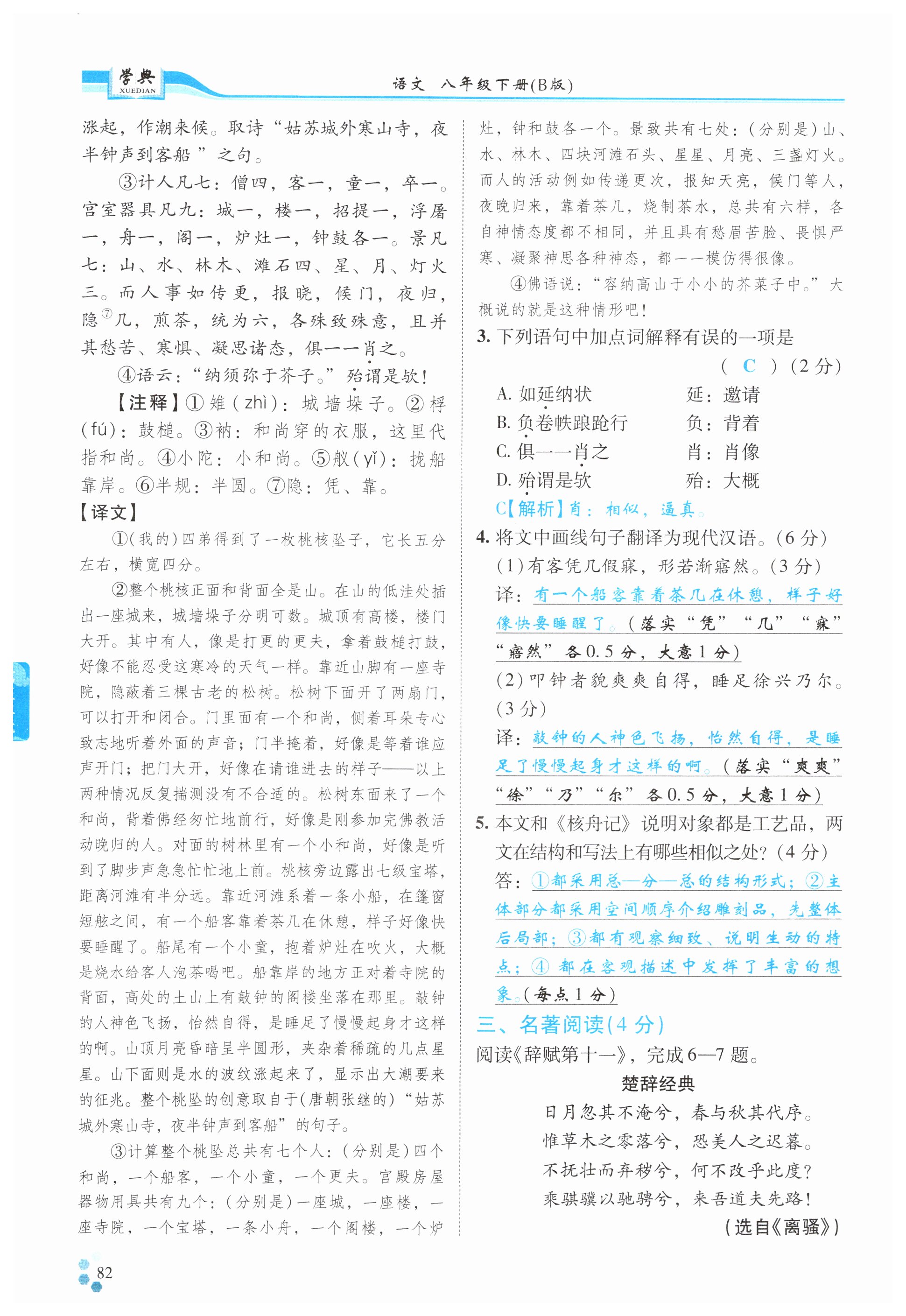 注:目前有些书本章节名称可能整理的还不是很完善,但都是按照顺序排列的,请同学们按照顺序仔细查找。练习册 2025年学典四川八年级语文下册人教版B版 答案主要是用来给同学们做完题方便对答案用的,请勿直接抄袭。